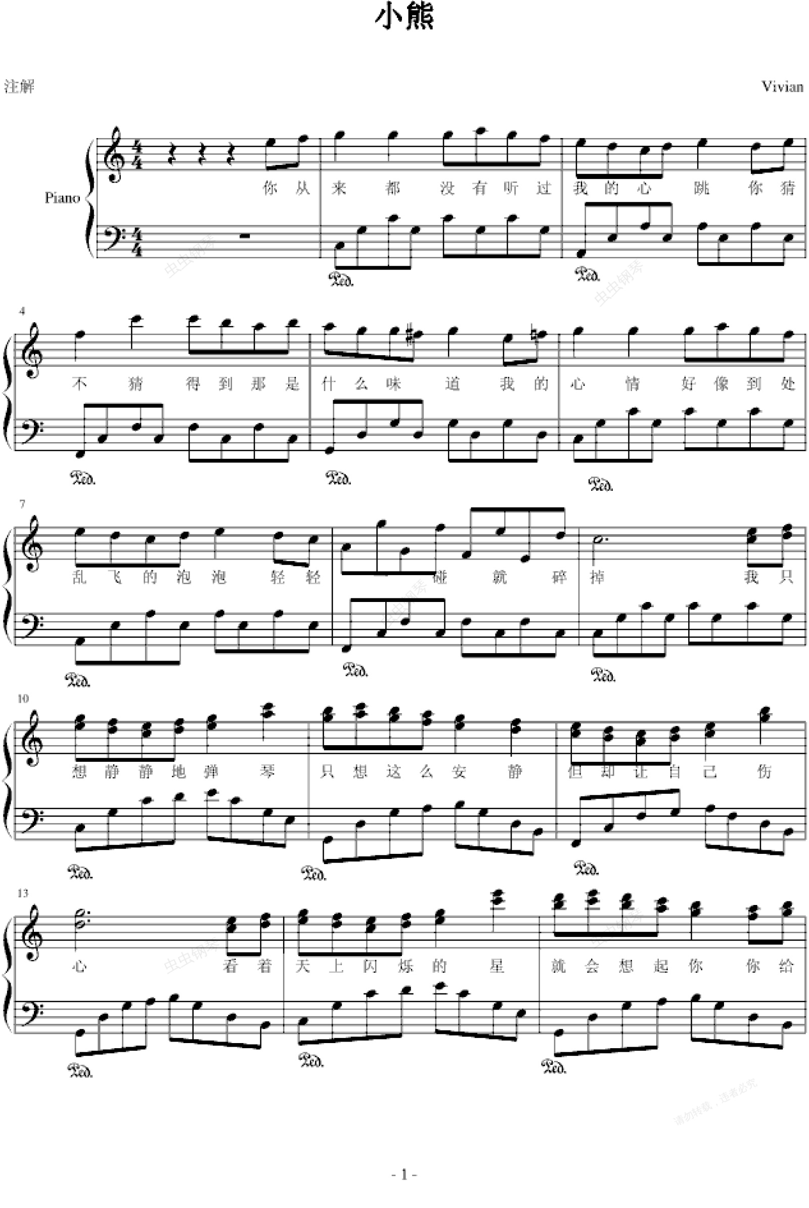 钢琴谱:小熊