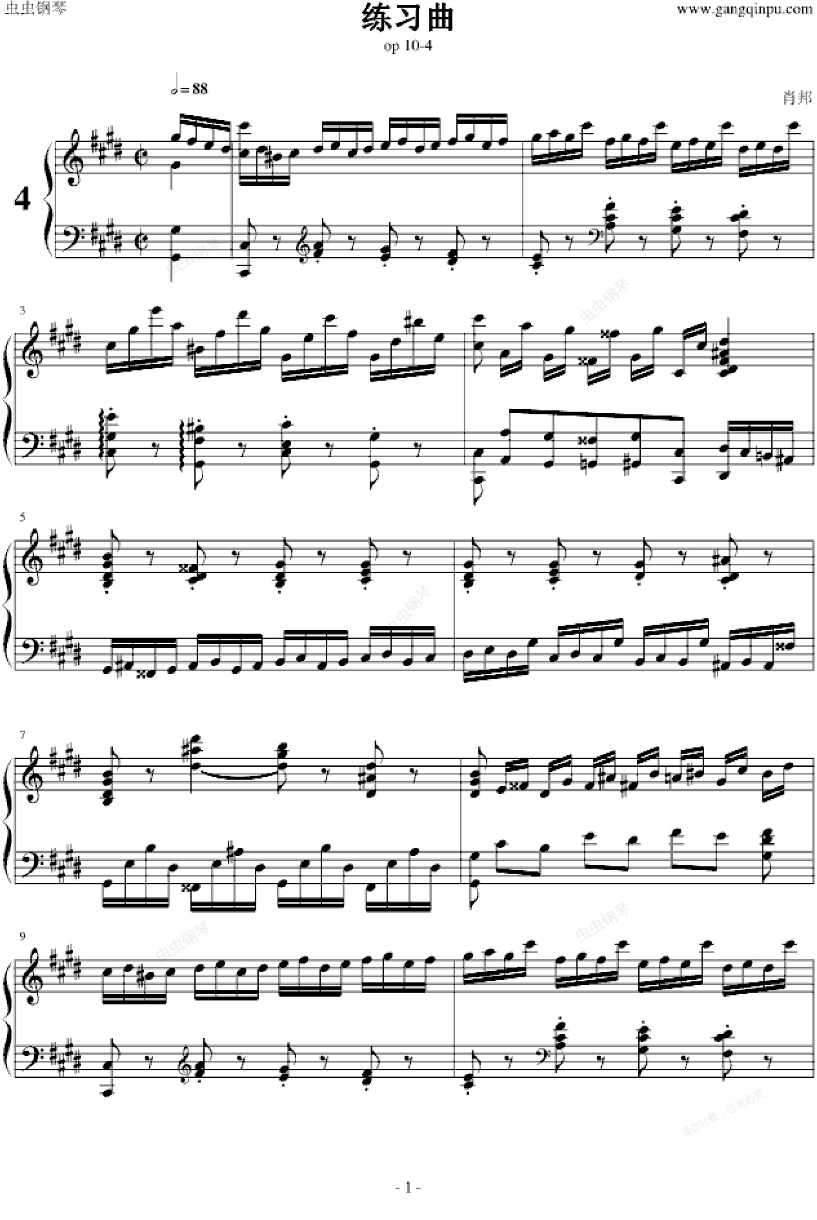 钢琴谱:练习曲 op 10-4