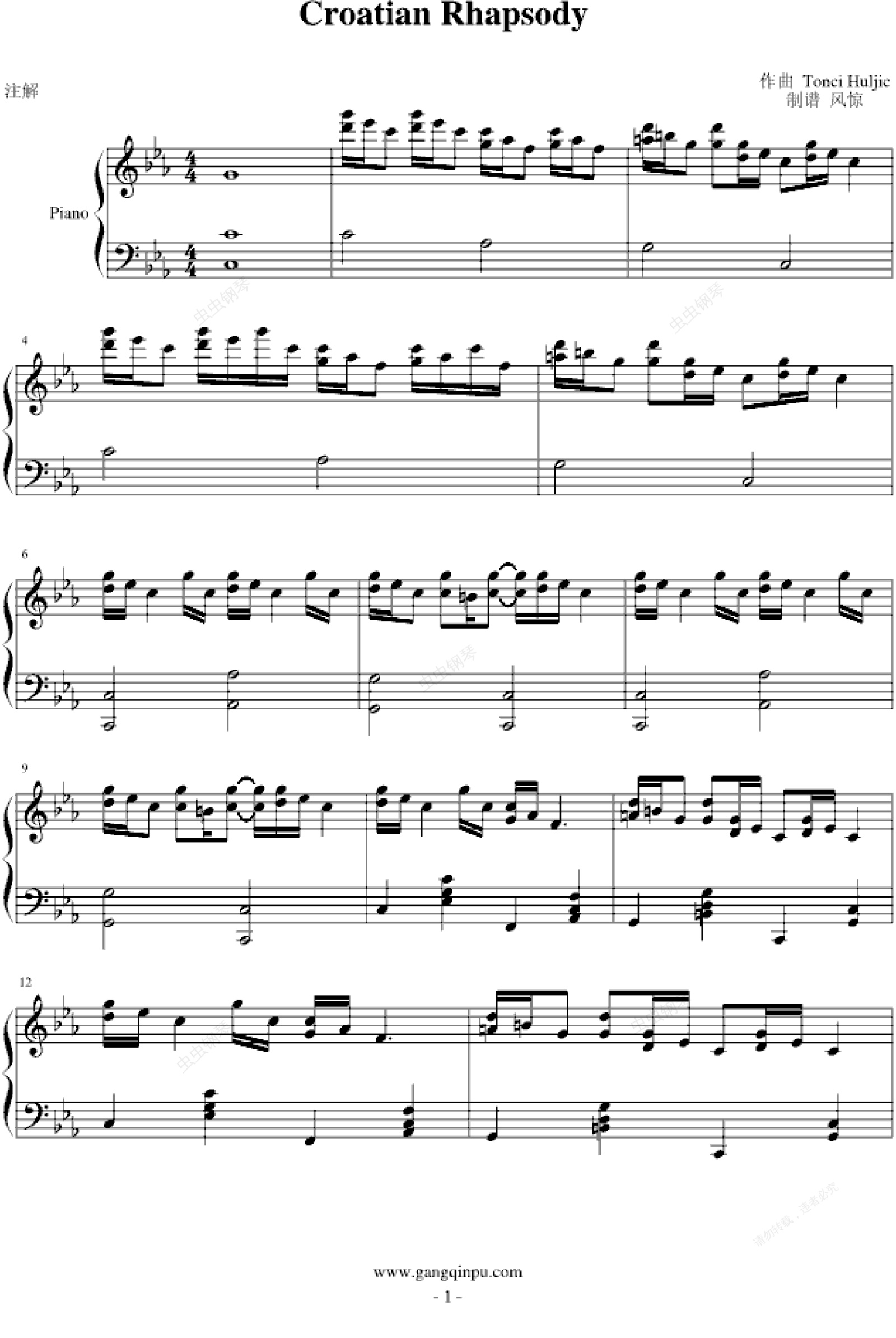 钢琴谱:克罗地亚狂想曲-(完整版)