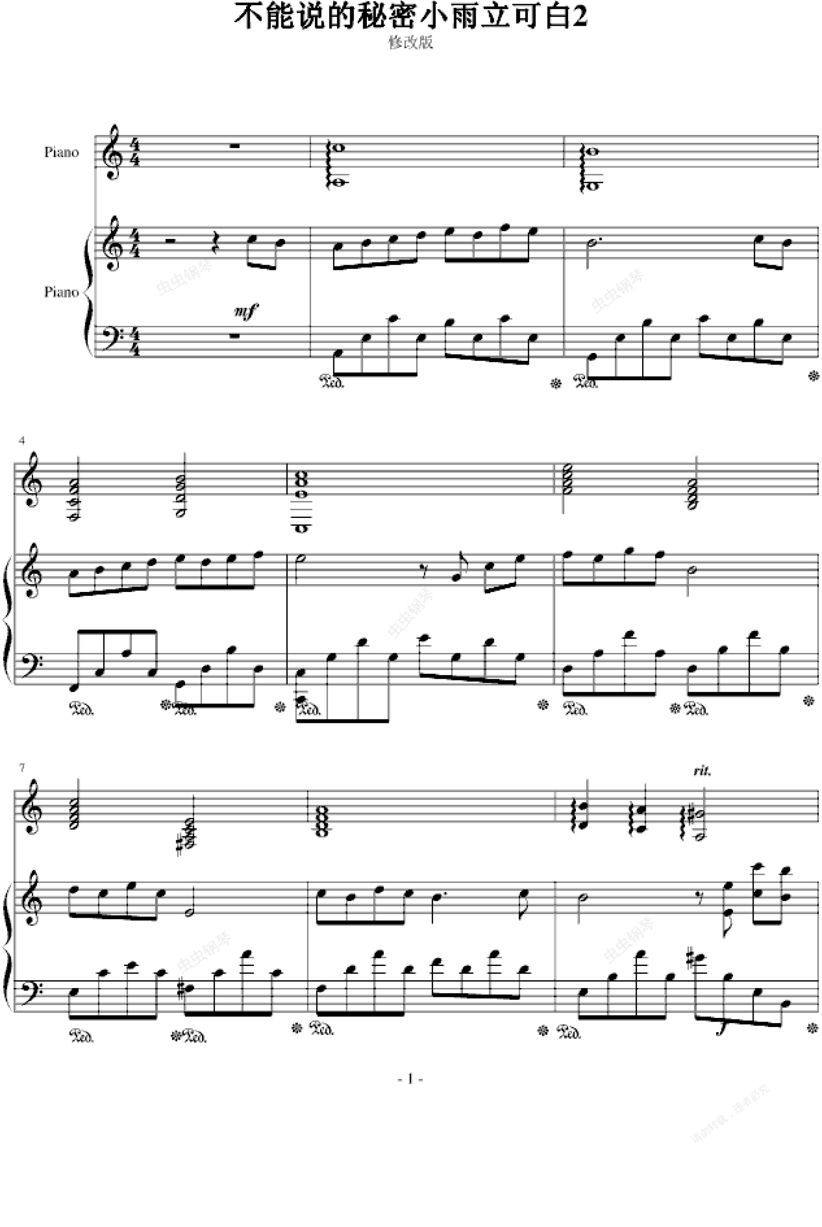 钢琴谱:小雨立可白二 三手联弹 修改版