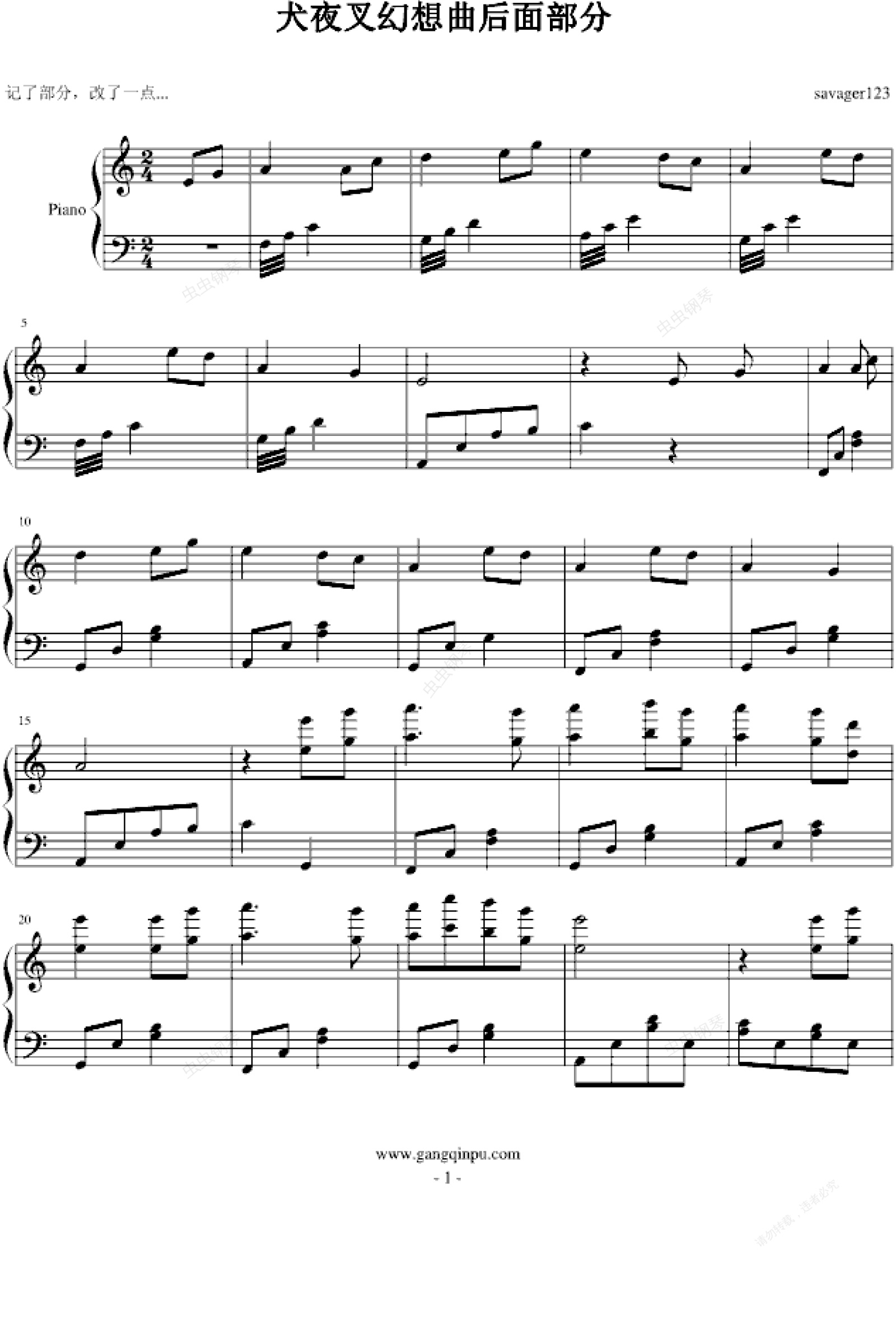 钢琴谱:犬夜叉-幻想曲后面部分