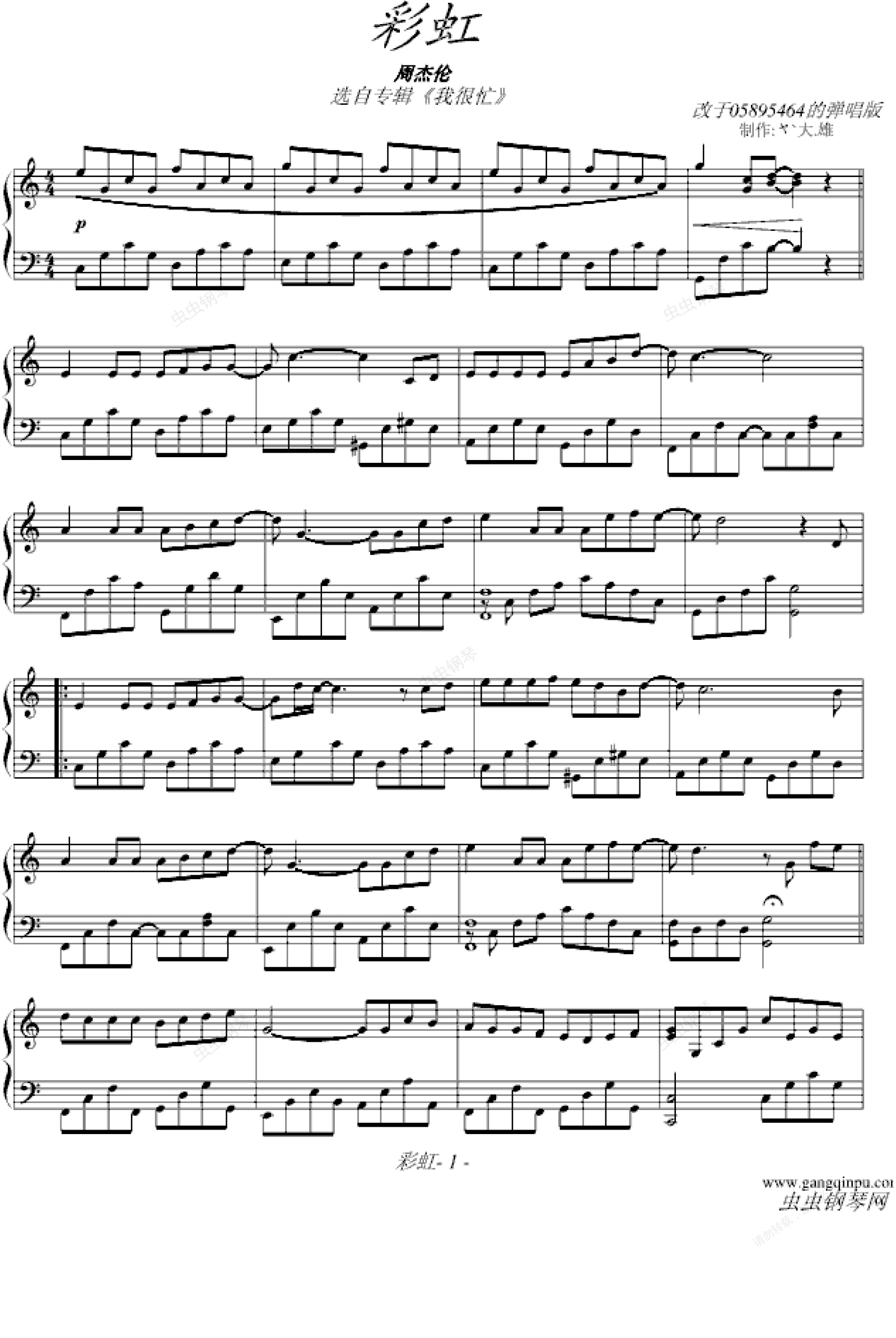 钢琴谱:彩虹-弹奏版