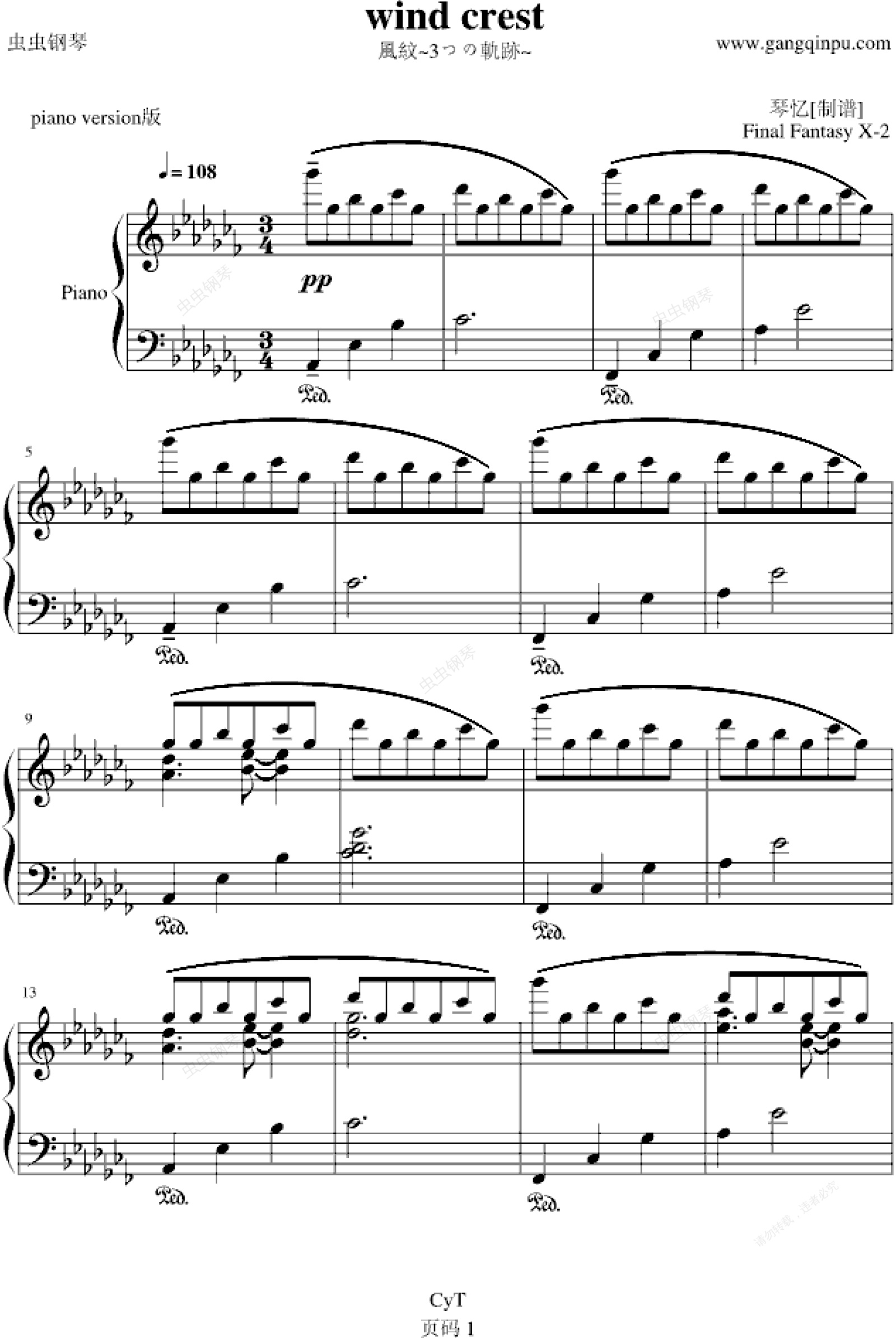 钢琴谱:wind crest(原谱)
