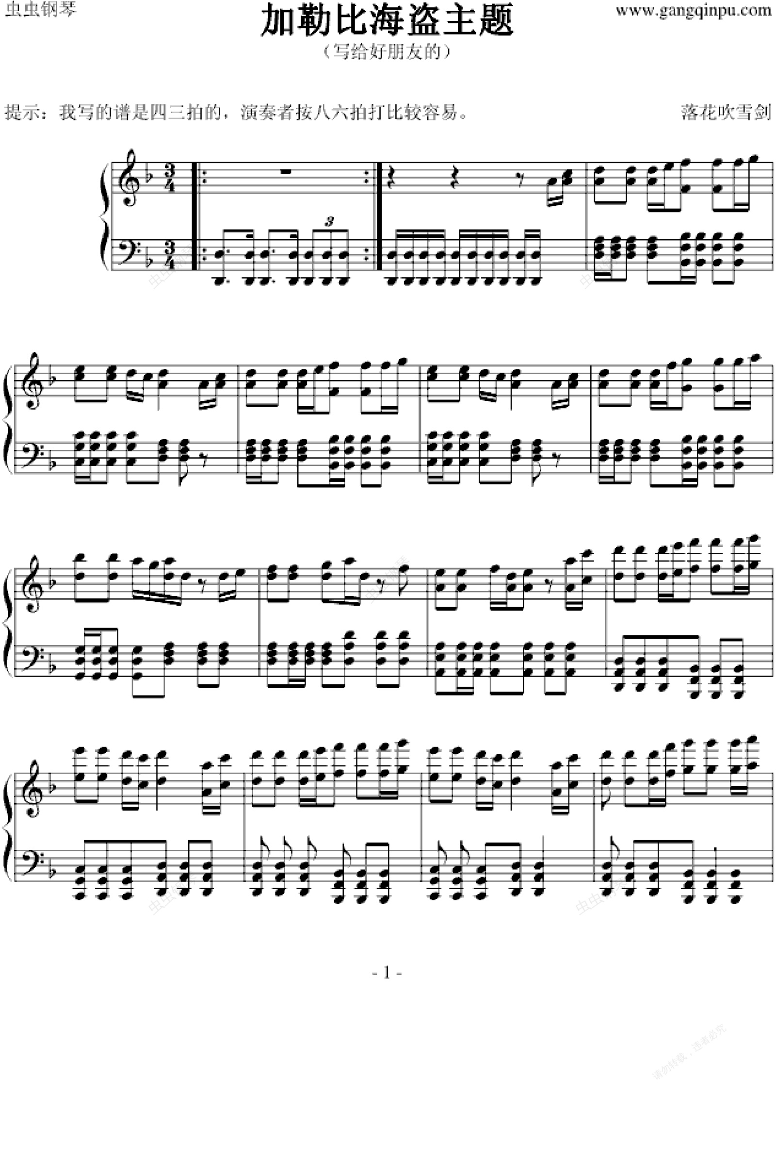 钢琴谱:加勒比海盗主题曲