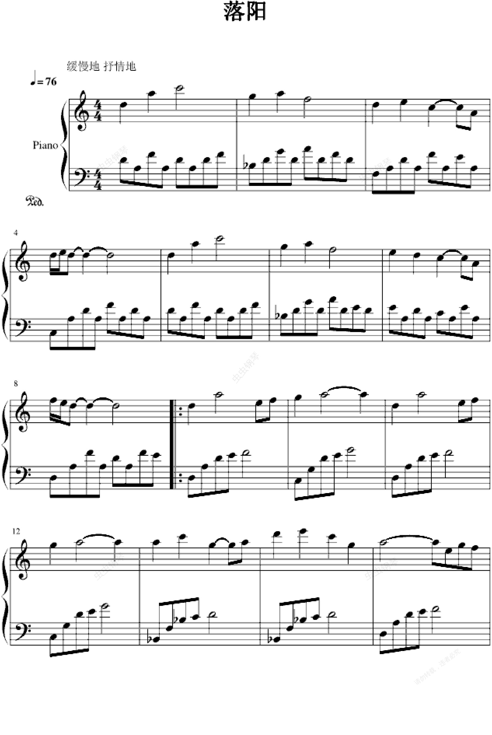 钢琴谱:落阳