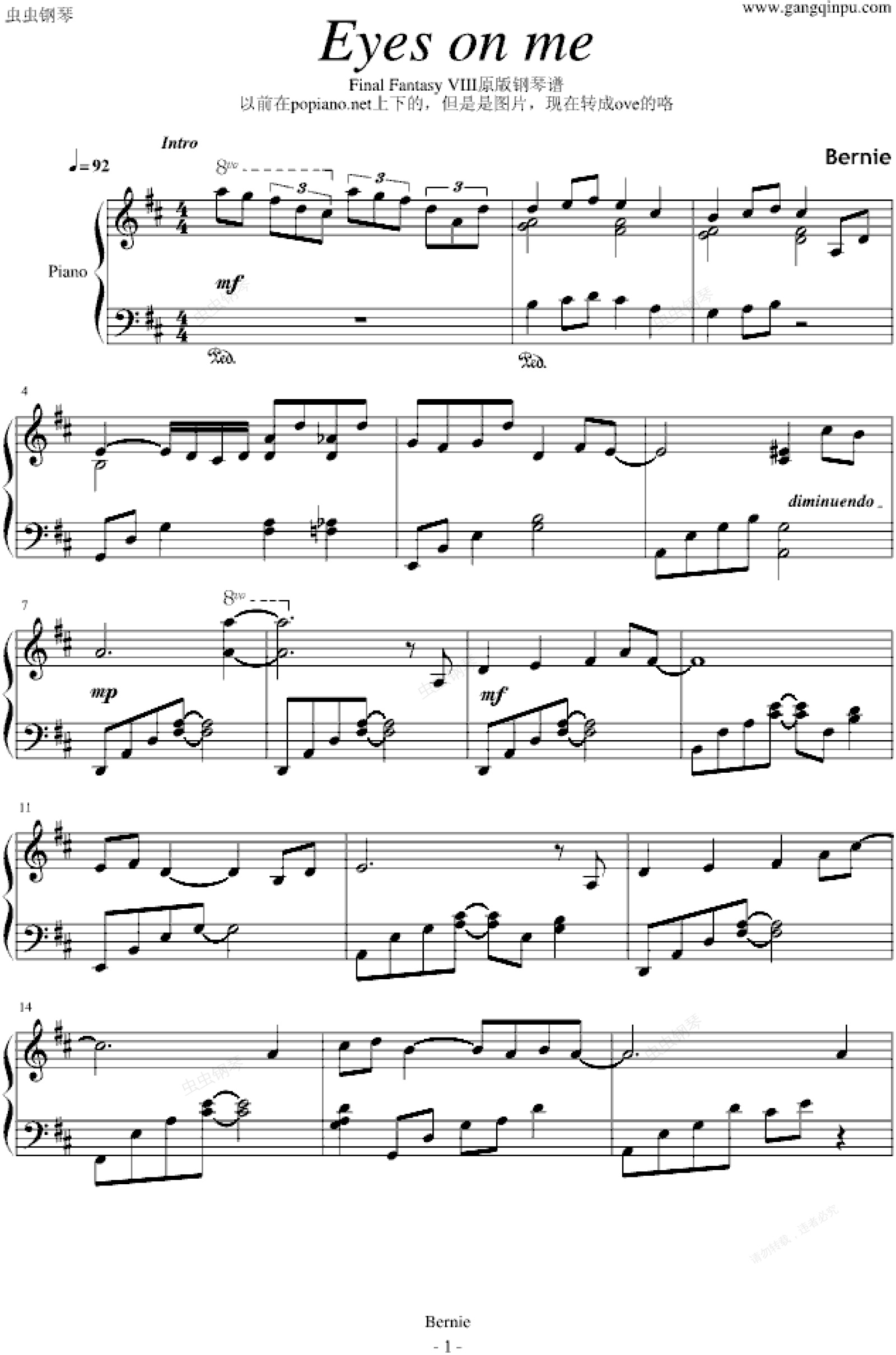 钢琴谱:Eyes on me-(原版)