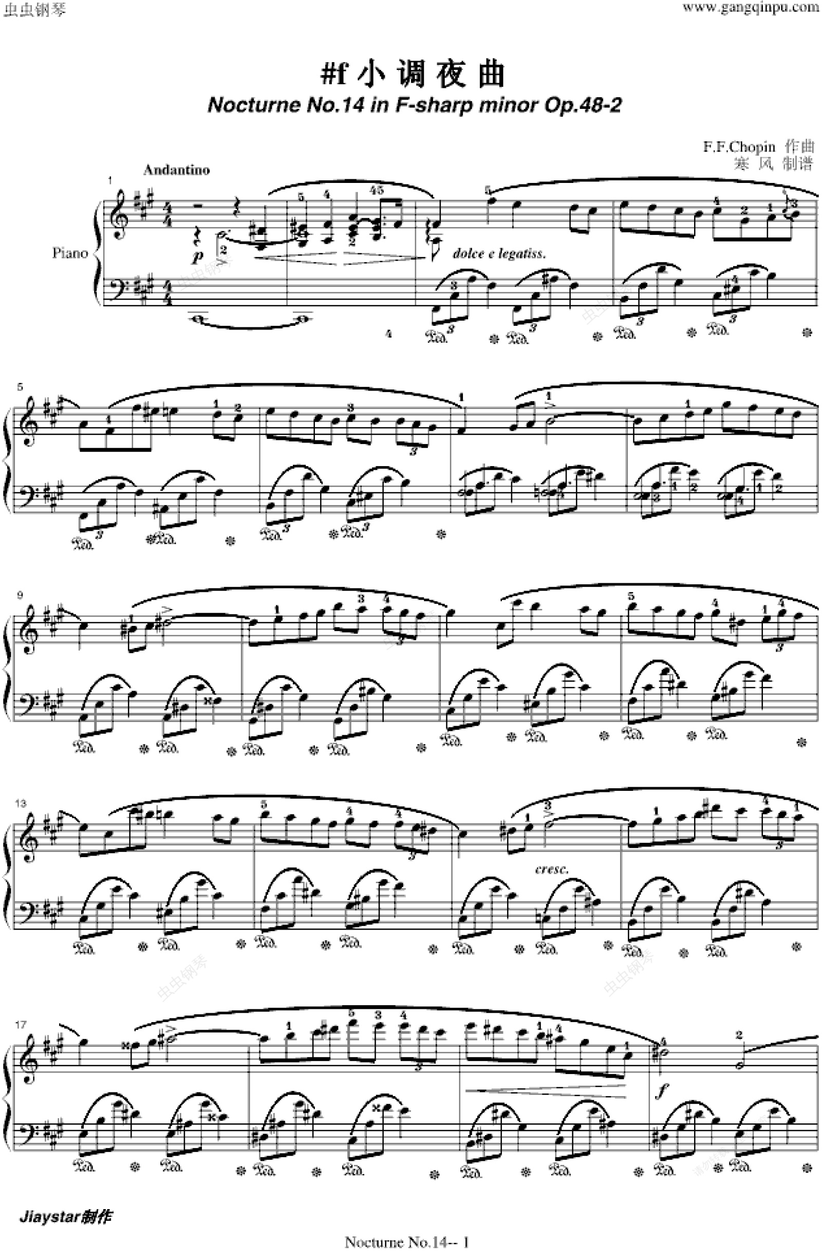 钢琴谱:肖邦夜曲14-#f小调夜曲(Op48-2)