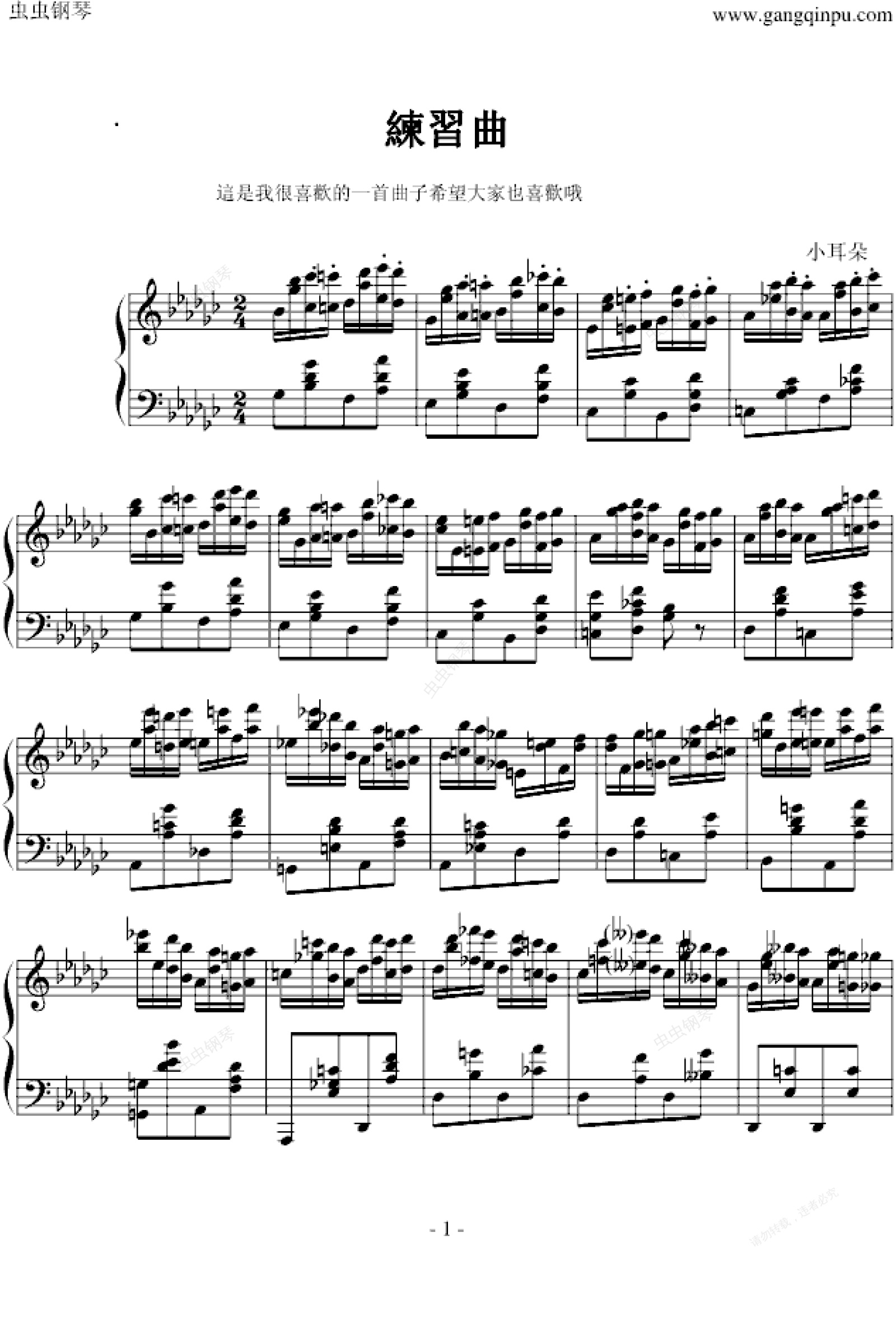钢琴谱:肖邦練習曲Op.25 Nr9