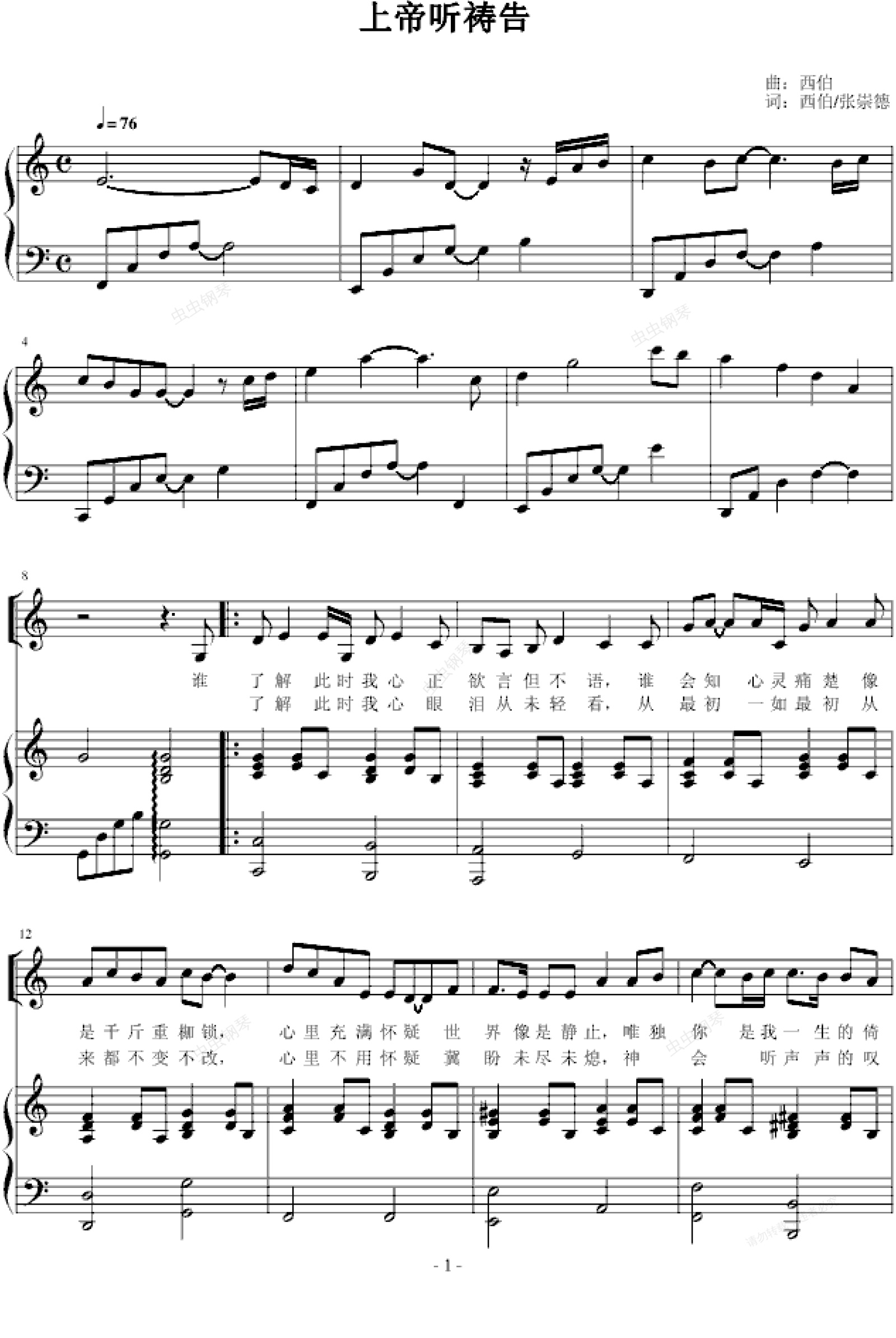 钢琴谱:上帝听祷告