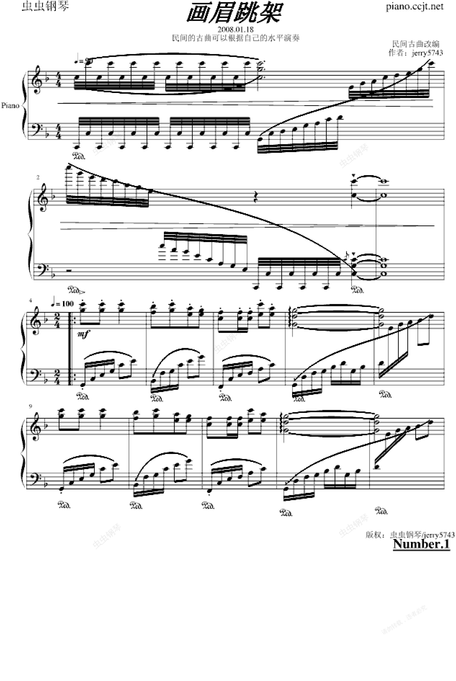 钢琴谱:画眉跳架