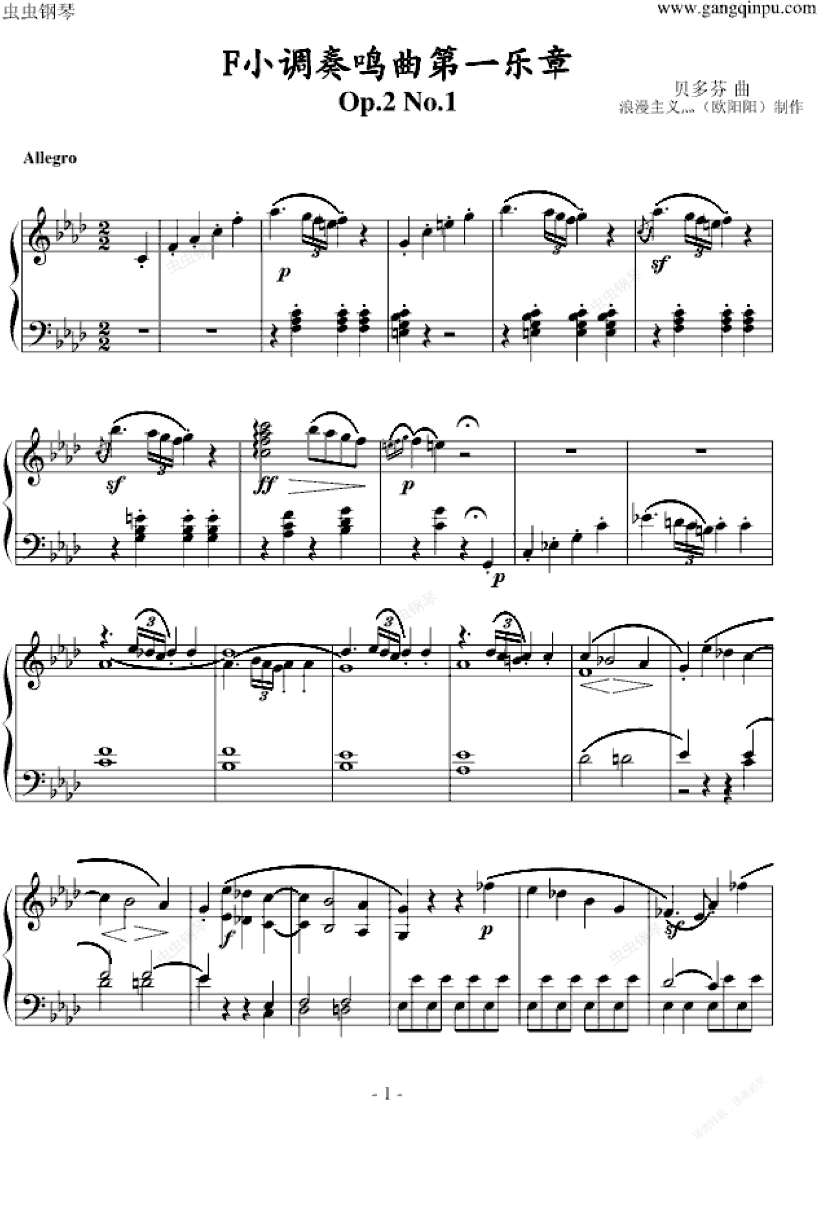 钢琴谱:f小调奏鸣曲第一乐章Op.2 No.1