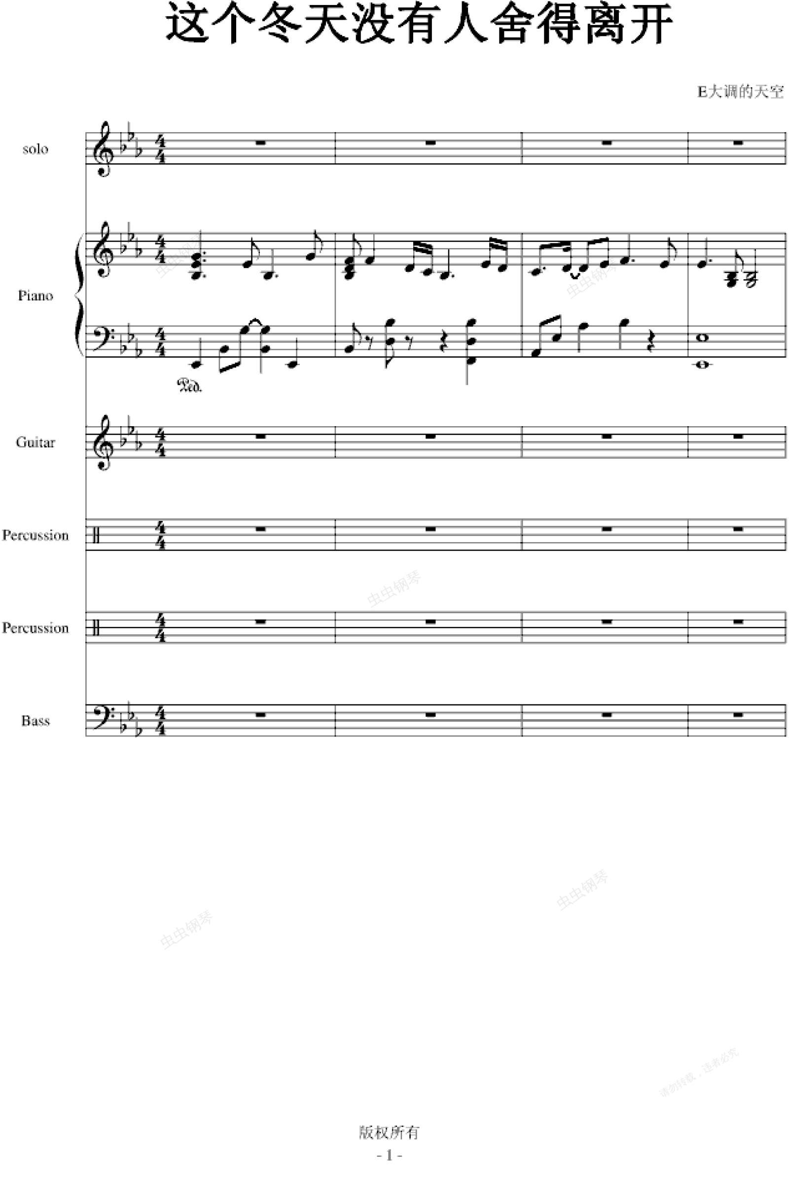 钢琴谱:这个冬天没有人舍得离开