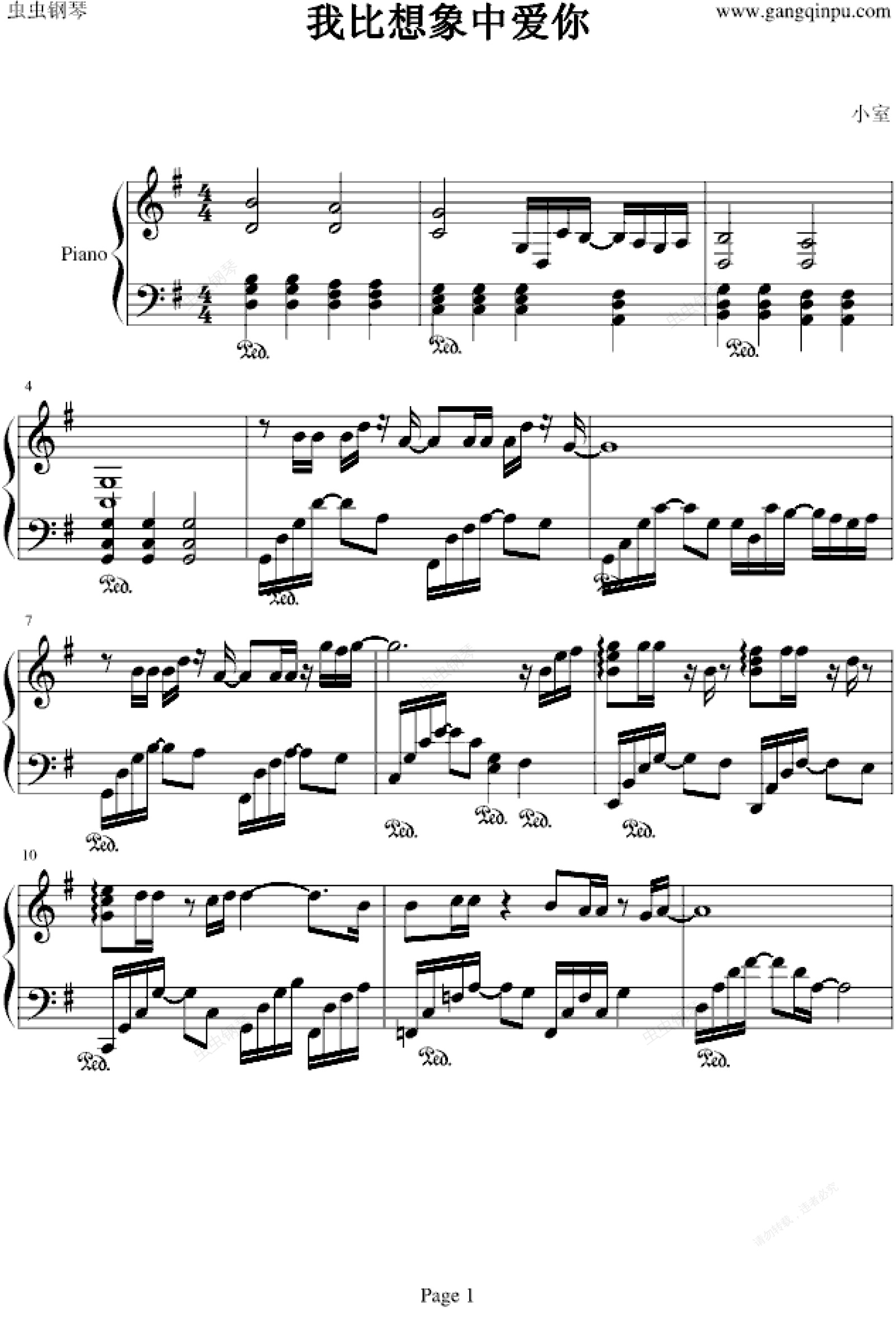 钢琴谱:我比想象中爱你