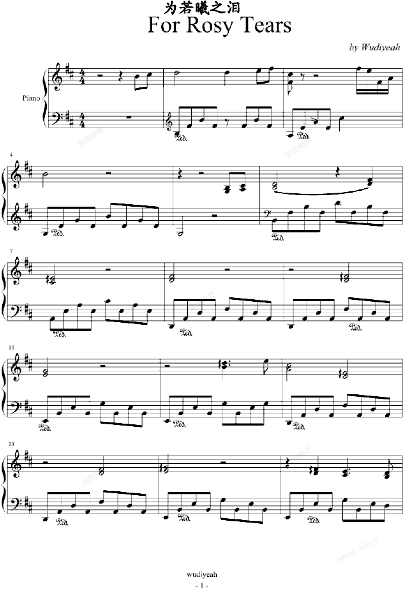 钢琴谱:为若曦之泪
