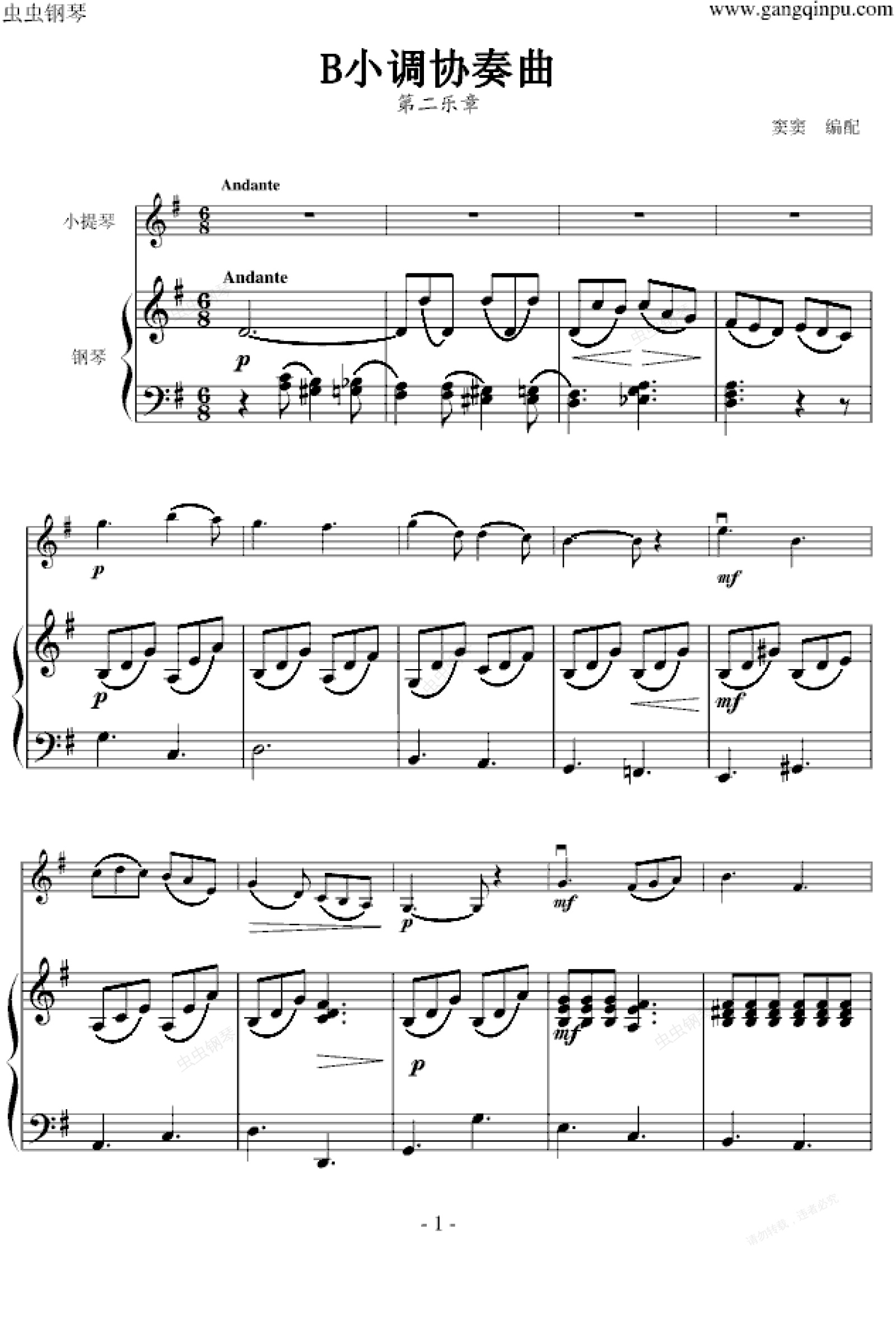 钢琴谱:B小调协奏曲(第二乐章)