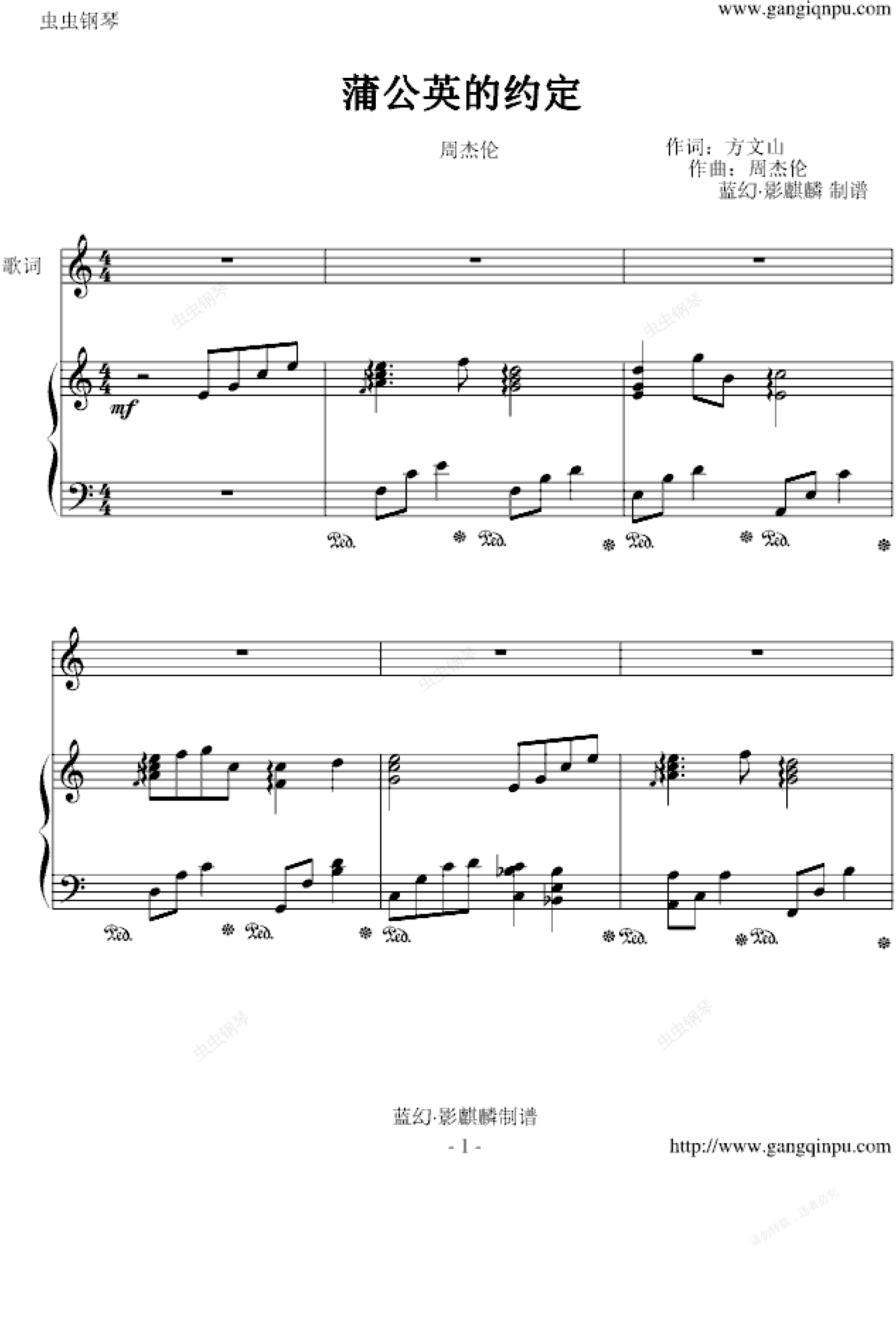 看到网上有不少《蒲公英的约定》谱(最喜欢的,和弦相当准),最开始没有找到伴奏版本,于是决定亲自做一首。