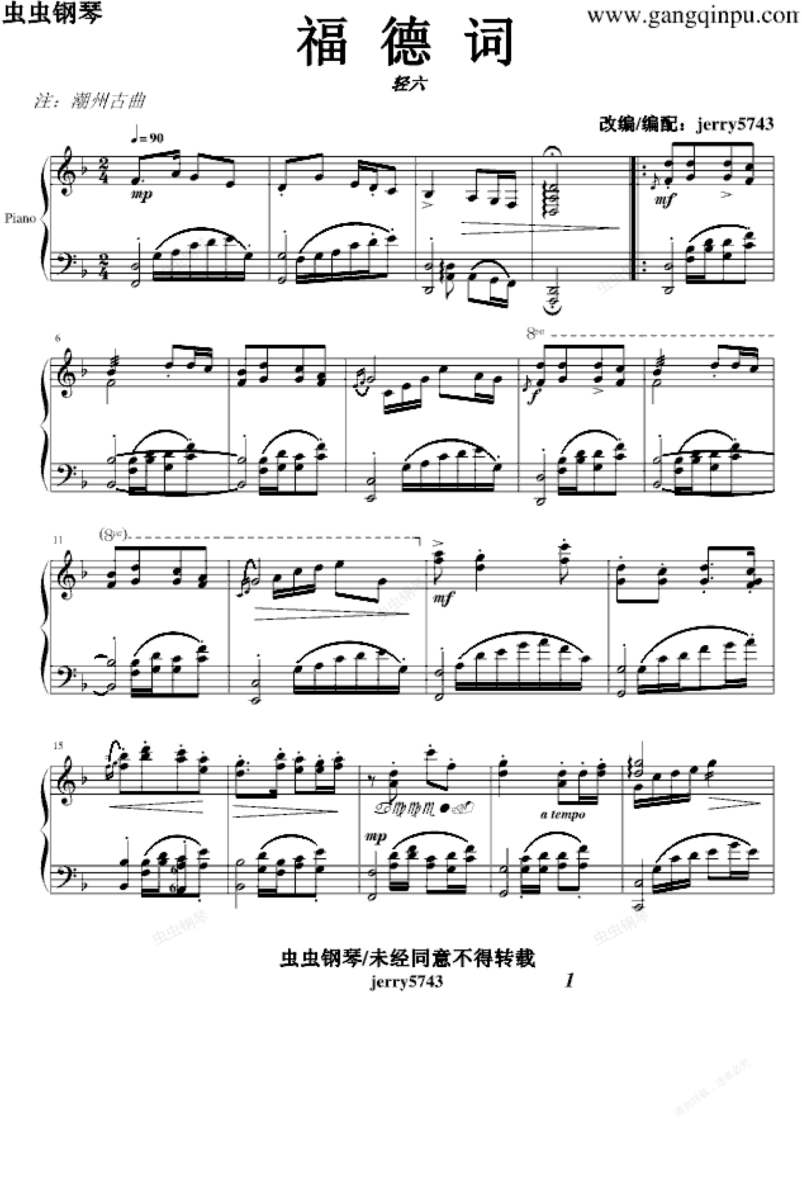 钢琴谱:福 德 词