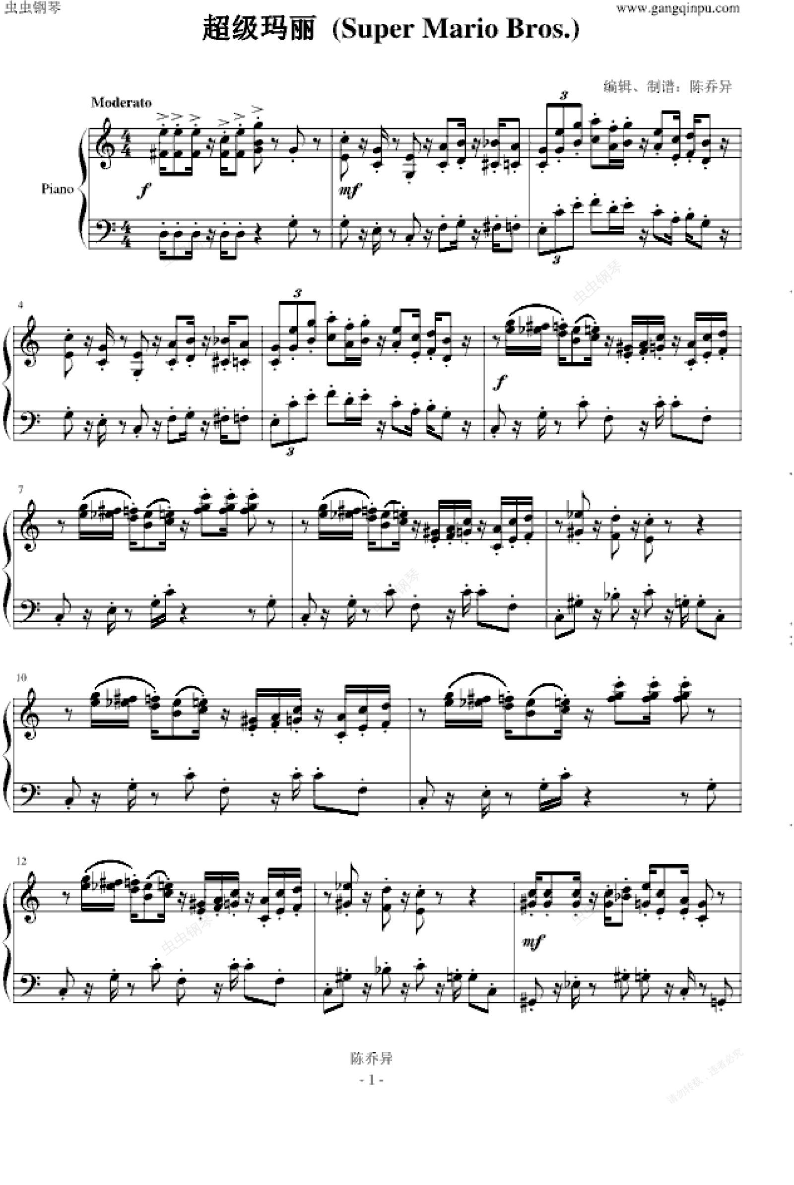 钢琴谱:超级玛莉 Super Mario Bros. (完全优化版)