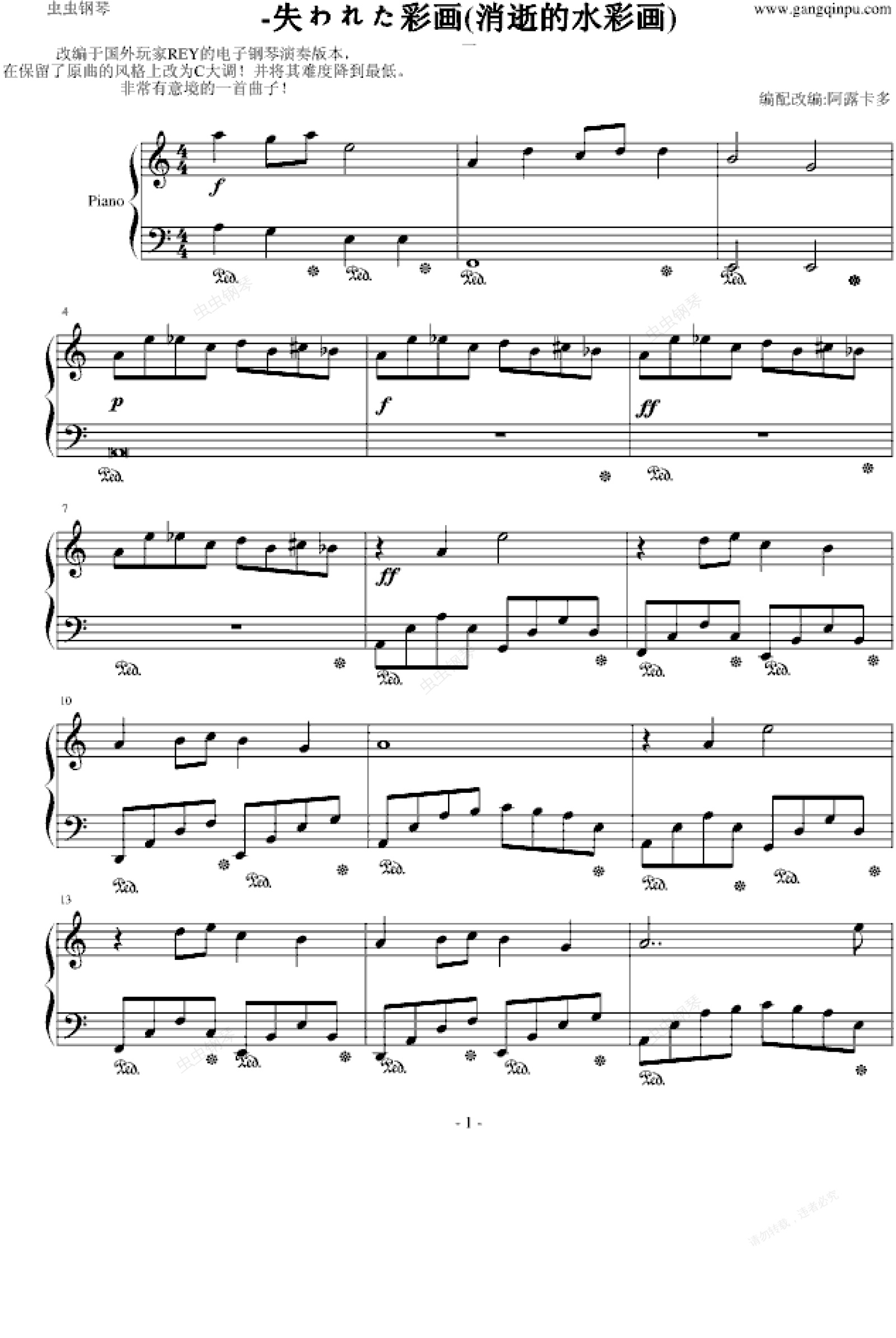 钢琴谱:-失われた彩画(消逝的水彩画)C调简单版