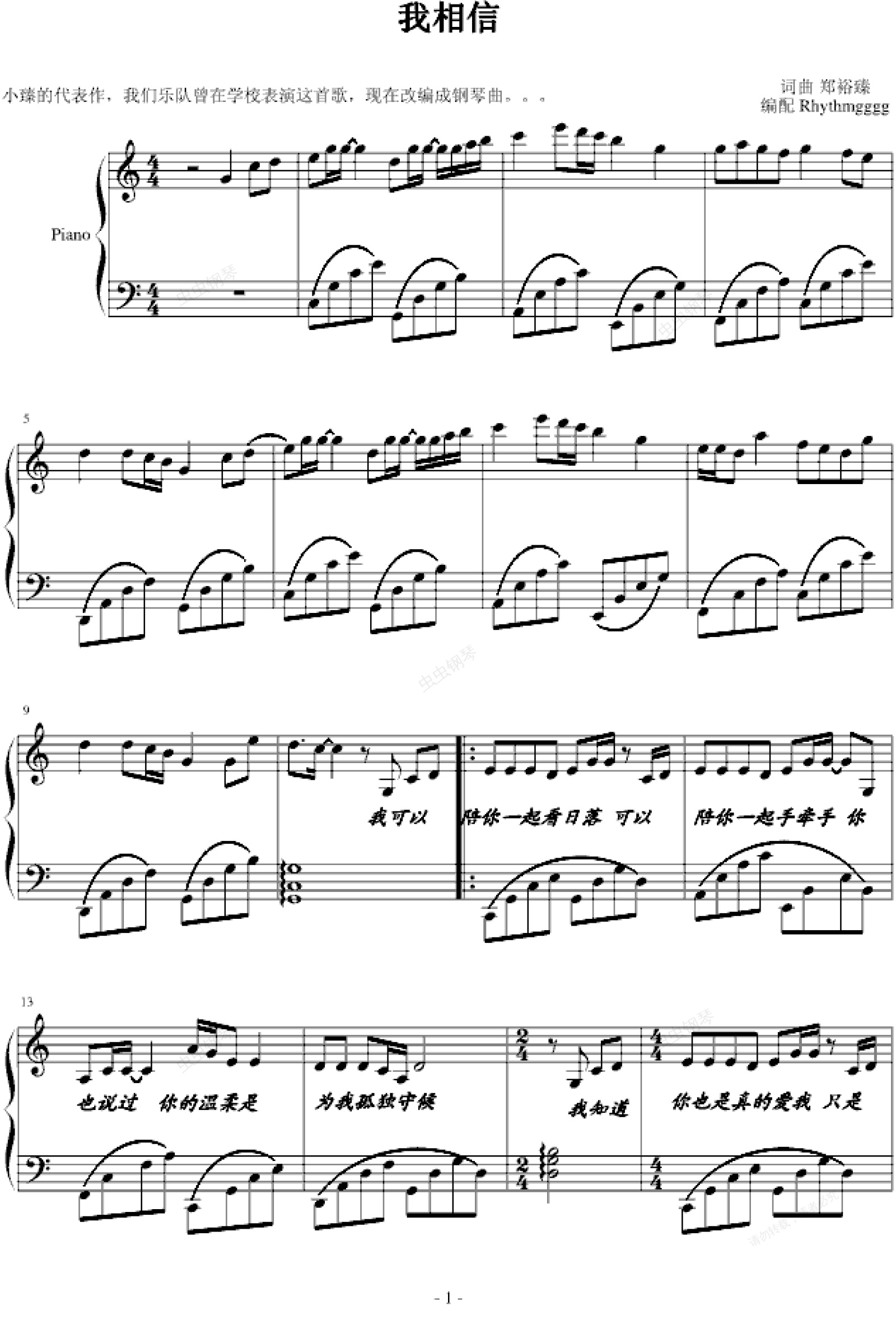小臻的代表作,我们乐队曾在学校表演这首歌,留下不少回忆,现在改编成钢琴曲............