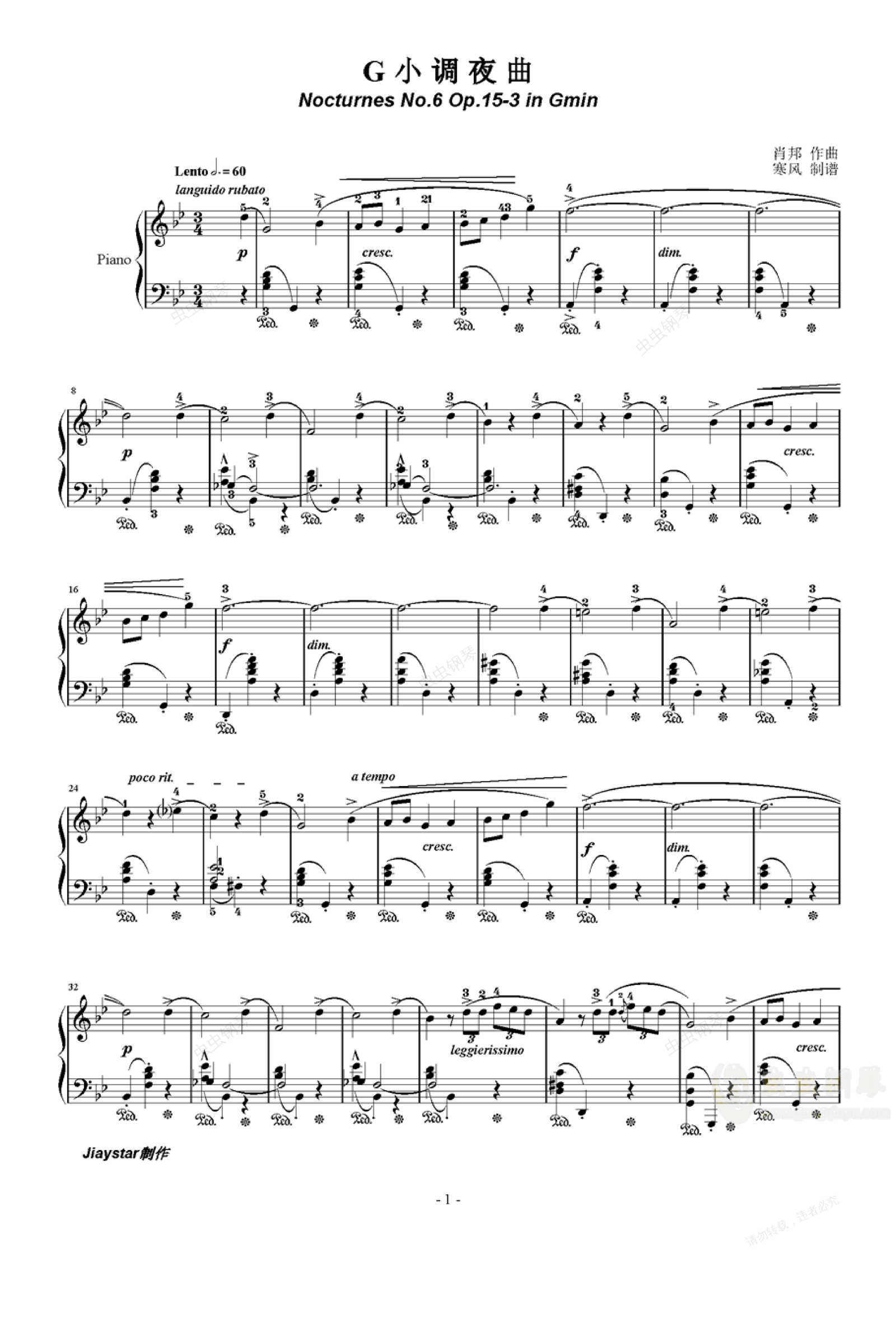 钢琴谱:肖邦夜曲6-G小调夜曲(Op.15-3)