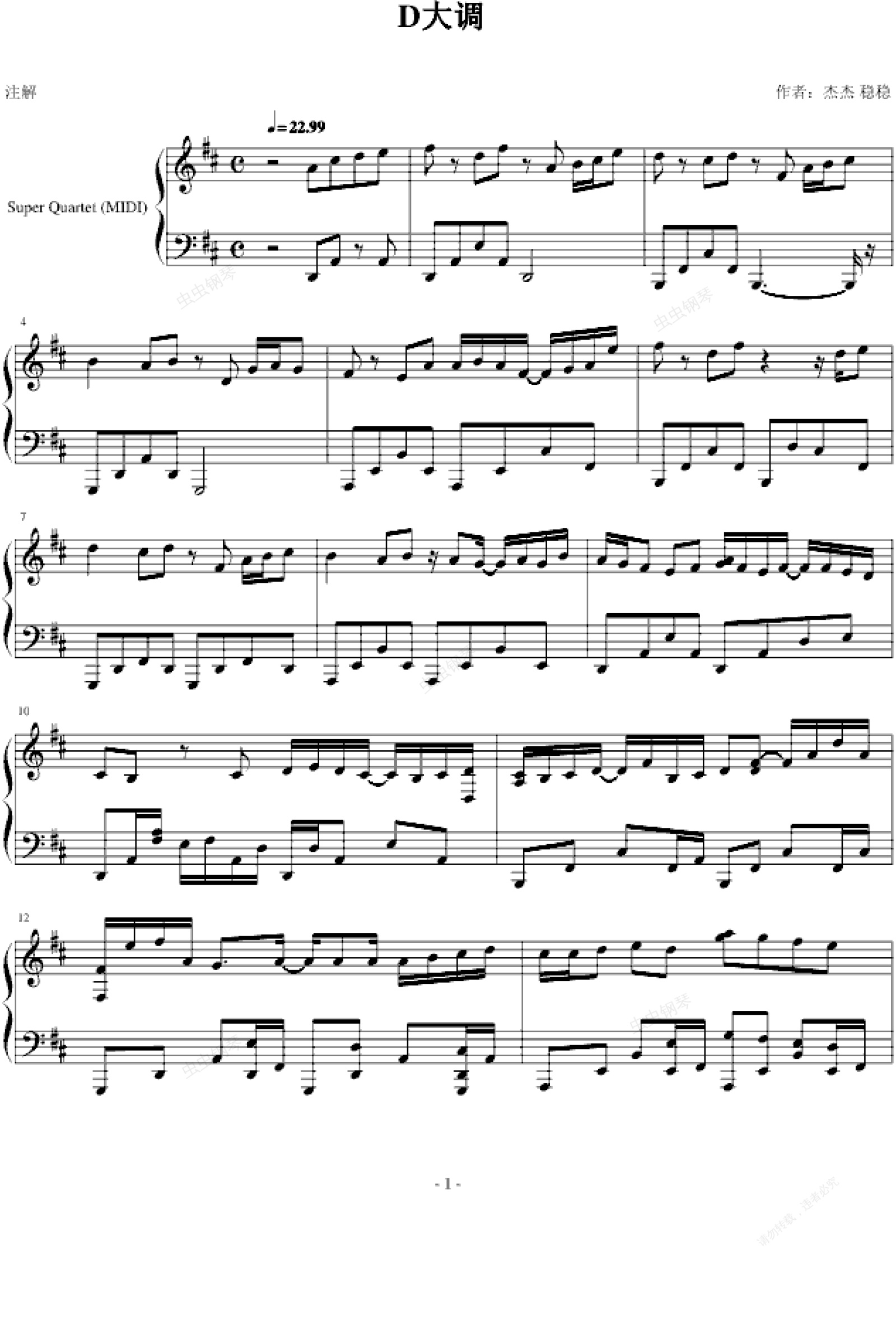 钢琴谱:D大调