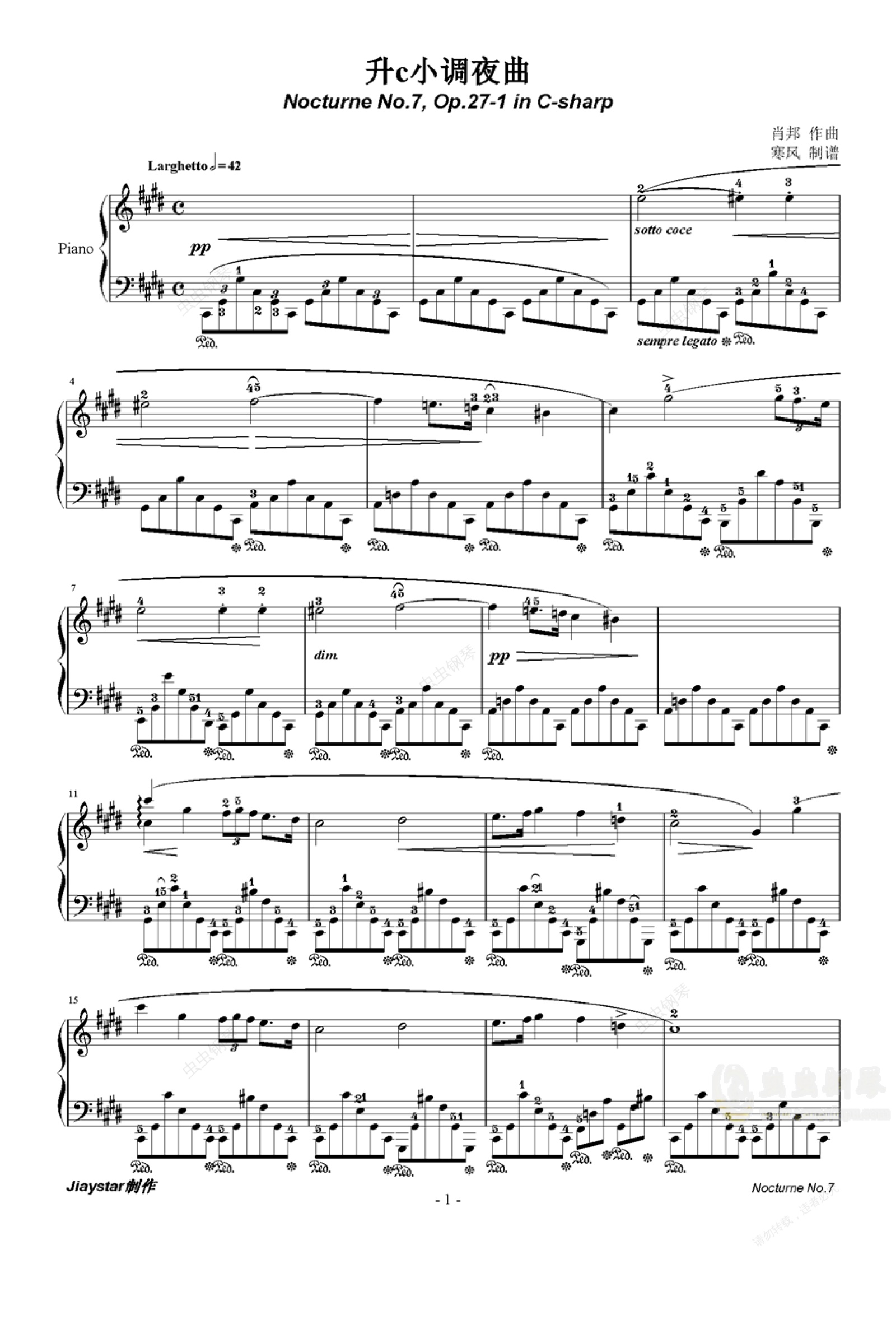 钢琴谱:肖邦夜曲7-升c小调夜曲(Op.27-1)