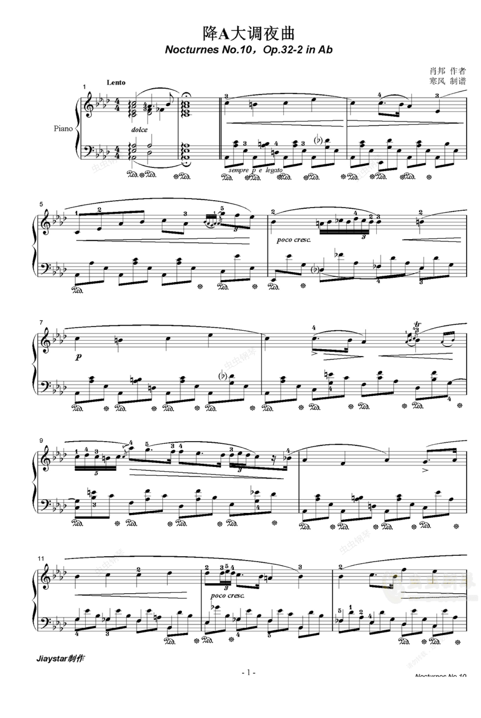 钢琴谱:肖邦夜曲10-降A大调夜曲(Op.32-2)