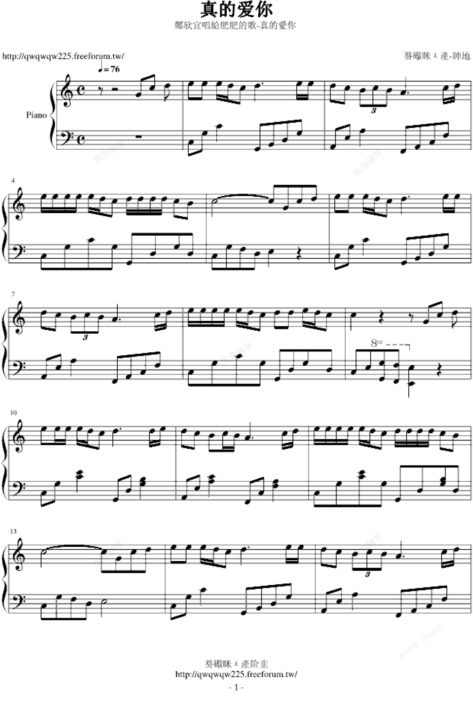 钢琴谱:鄭欣宜唱給肥肥的歌-真的愛你