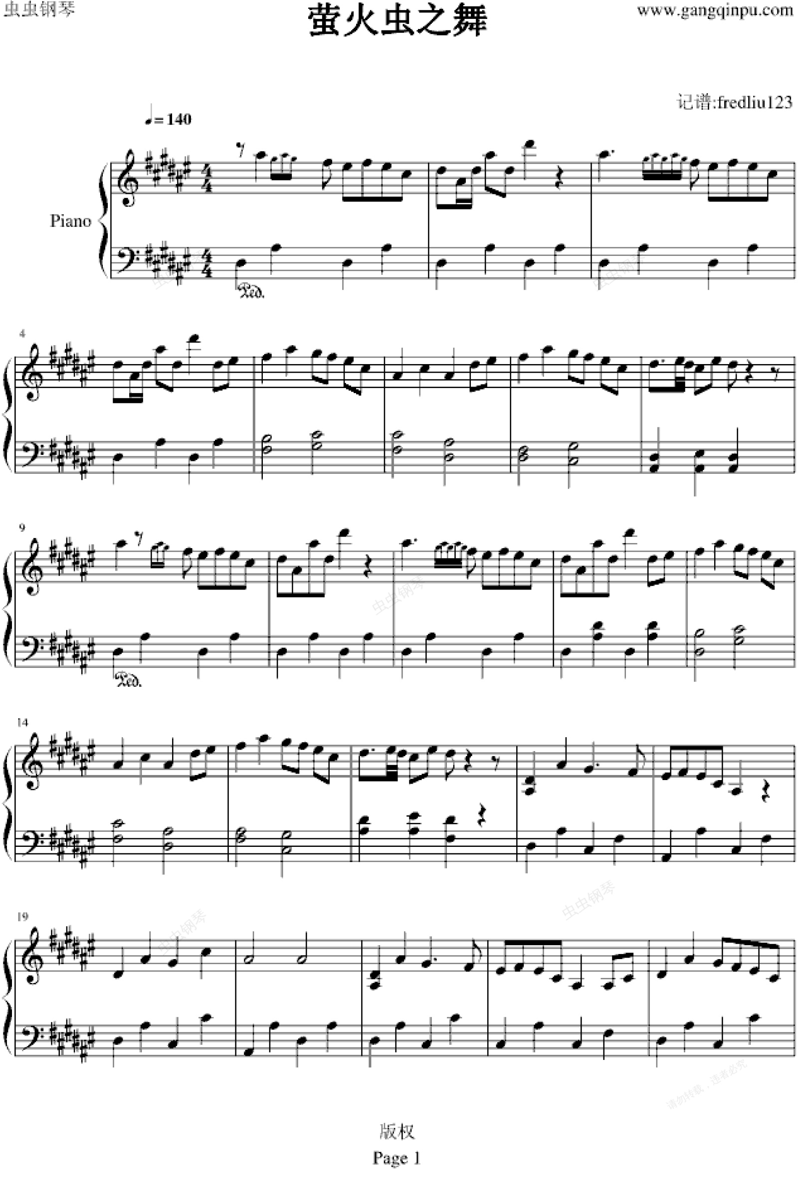 钢琴谱:萤火虫之舞