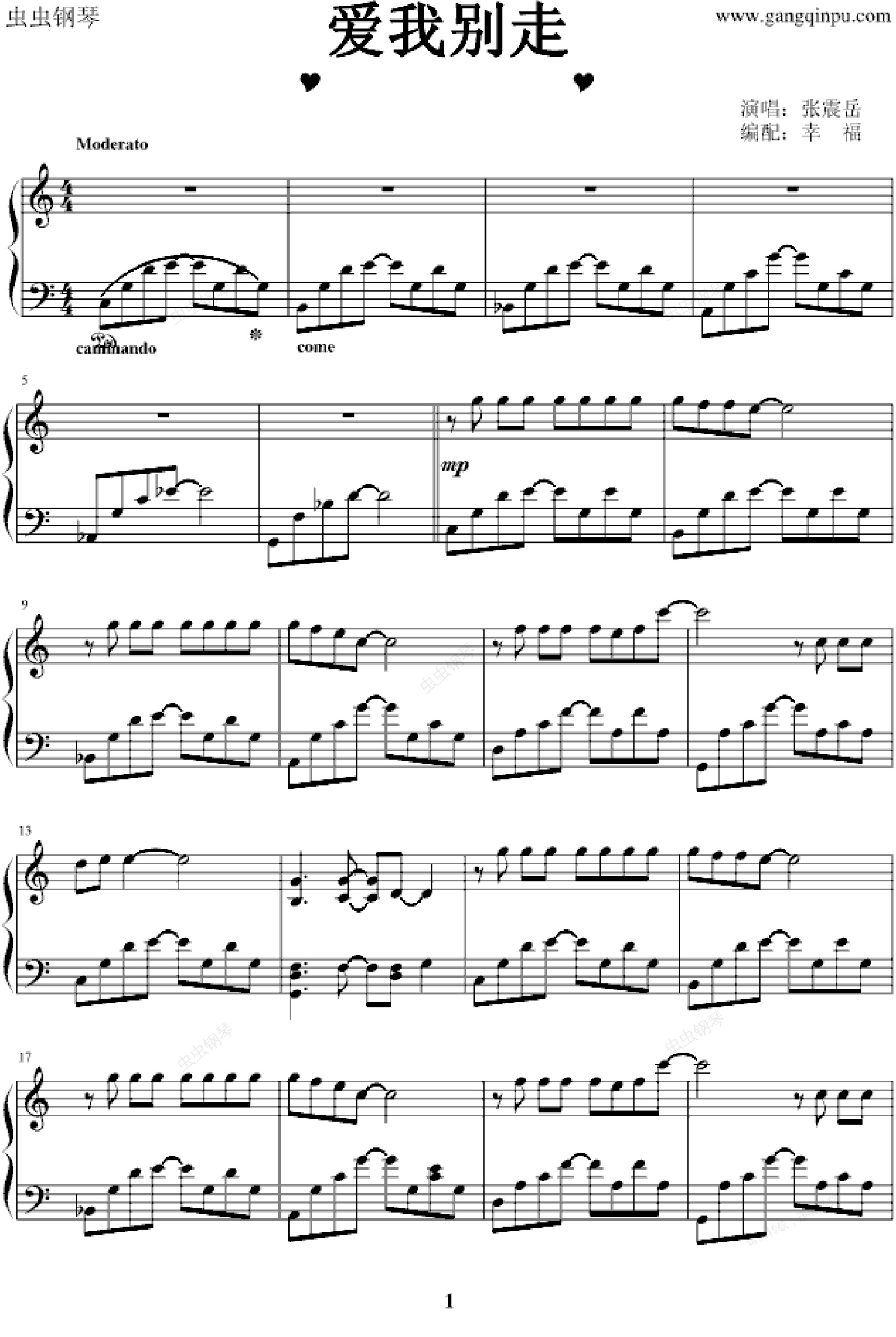 钢琴谱:爱我别走