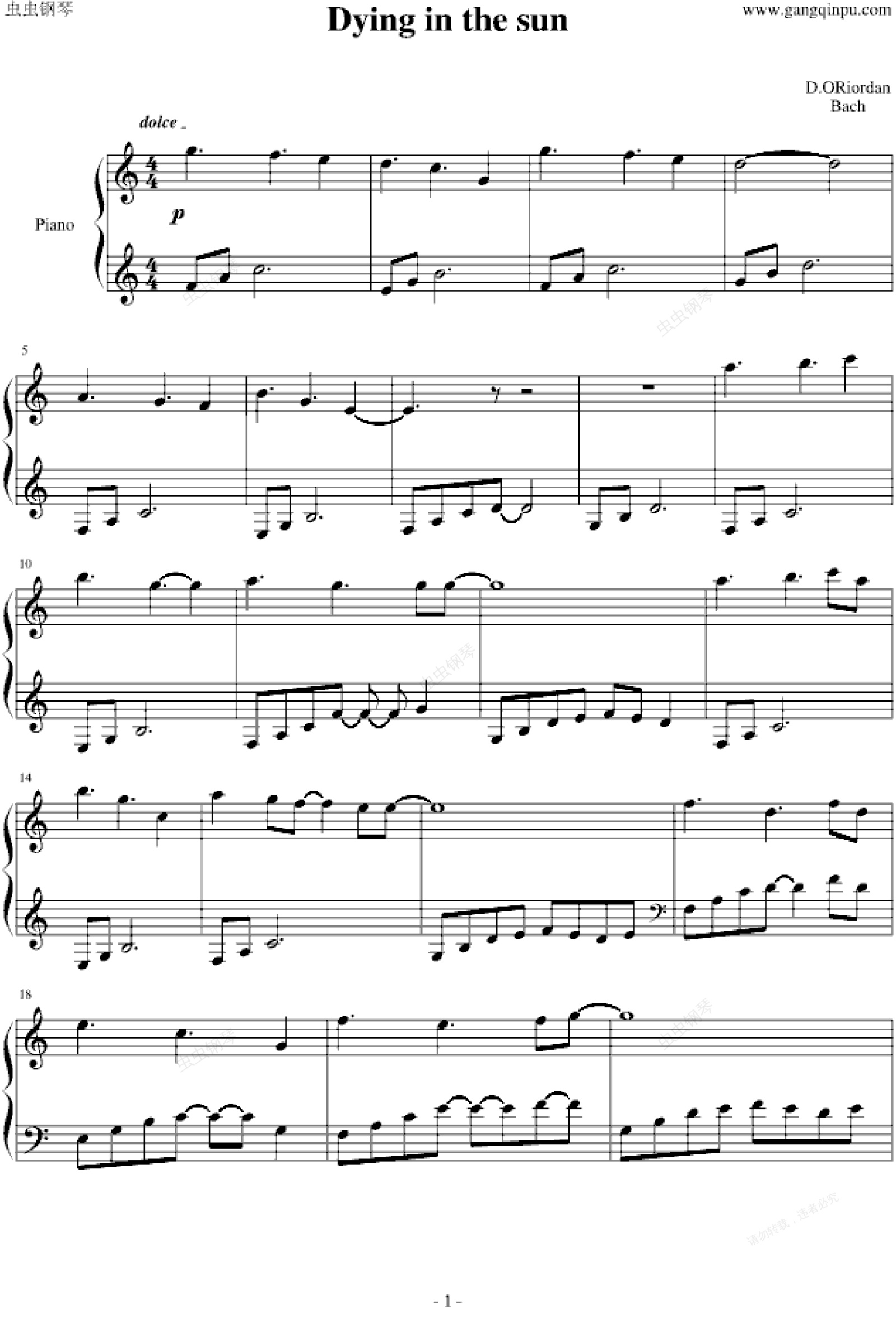 钢琴谱:Dying in the sun