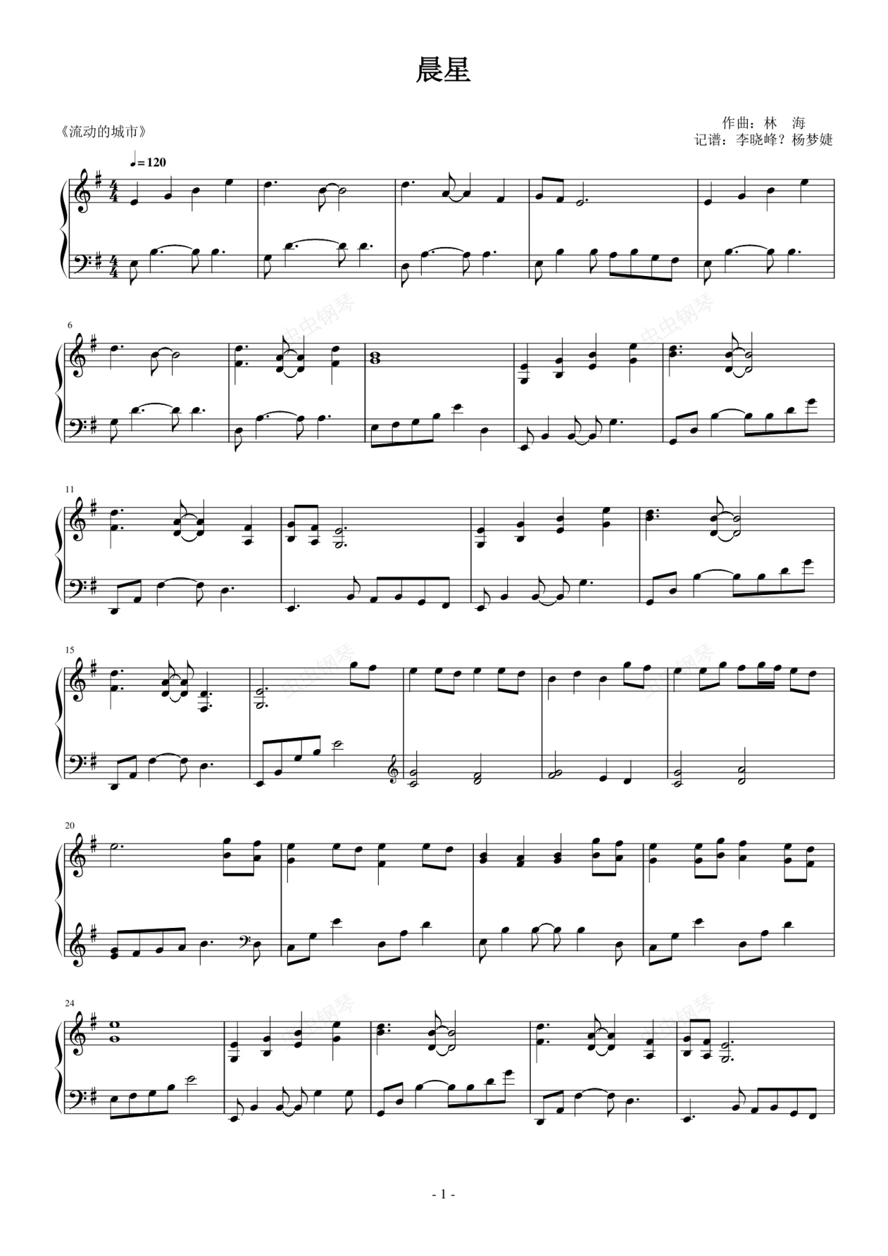 钢琴谱:晨星