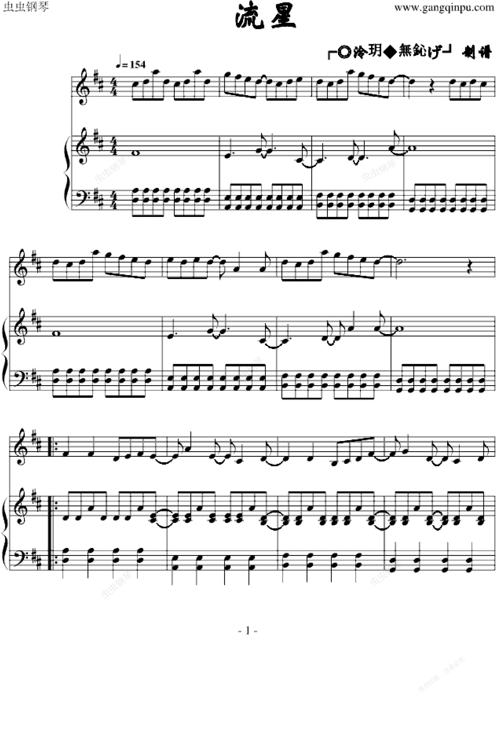 钢琴谱:流星