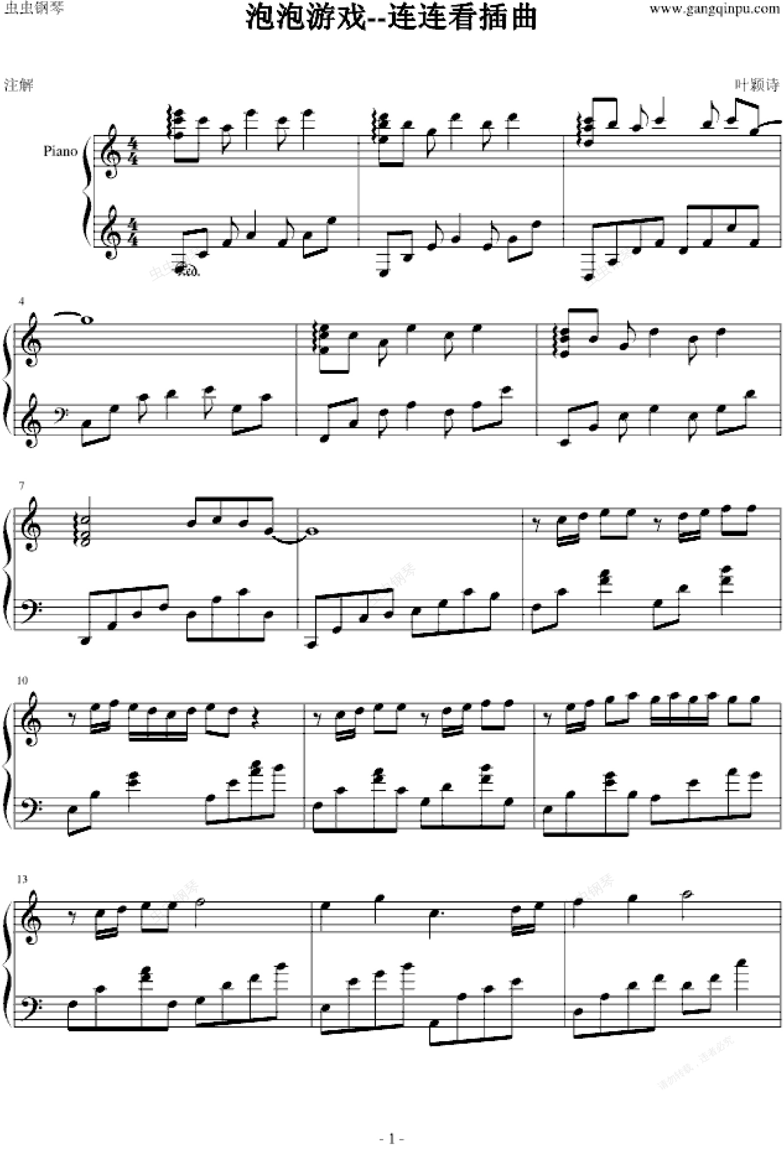 钢琴谱:泡泡游戏--连连看插曲
