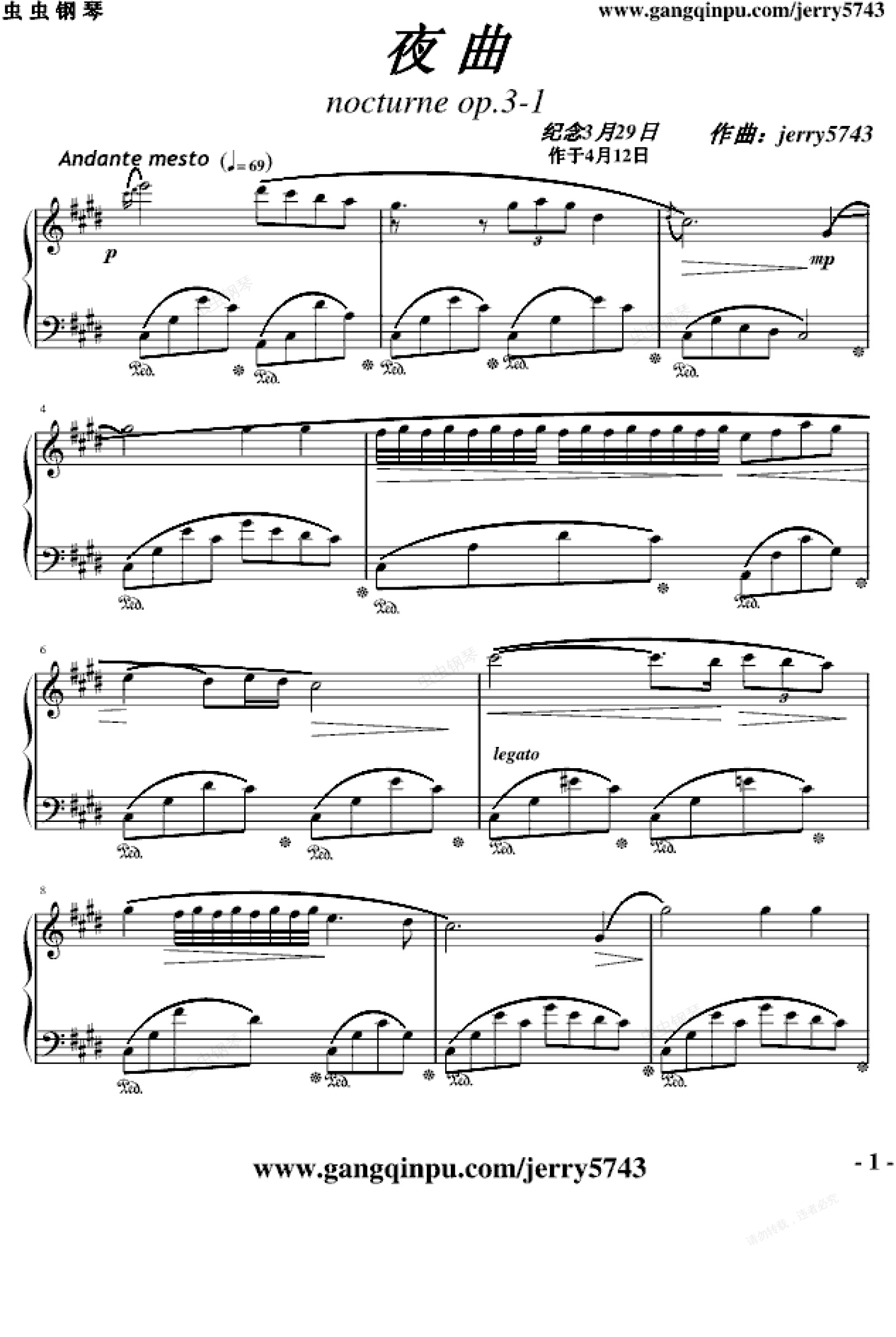 夜曲是浪漫派音乐独特的体裁,通常是指一种具有安谧恬静的气质和沉思默想的性格的抒情器乐短曲,大都为钢琴曲。最早写这种作品的,是十九世纪初爱尔兰作曲家约翰·菲尔德。菲尔德的夜曲,是一些优雅的抒情小品,内容多情善感,形式简单朴素。