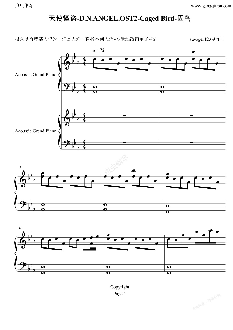 钢琴谱:天使怪盗-D.N.ANGEL.OST2-Caged Bird-囚鸟