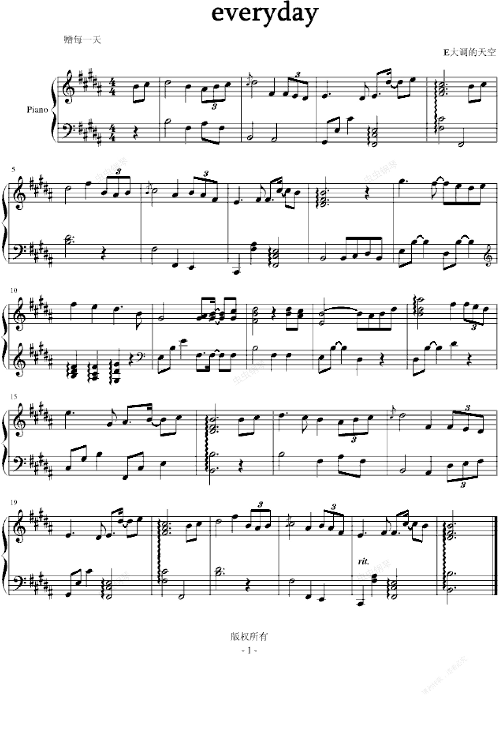 钢琴谱:everyday