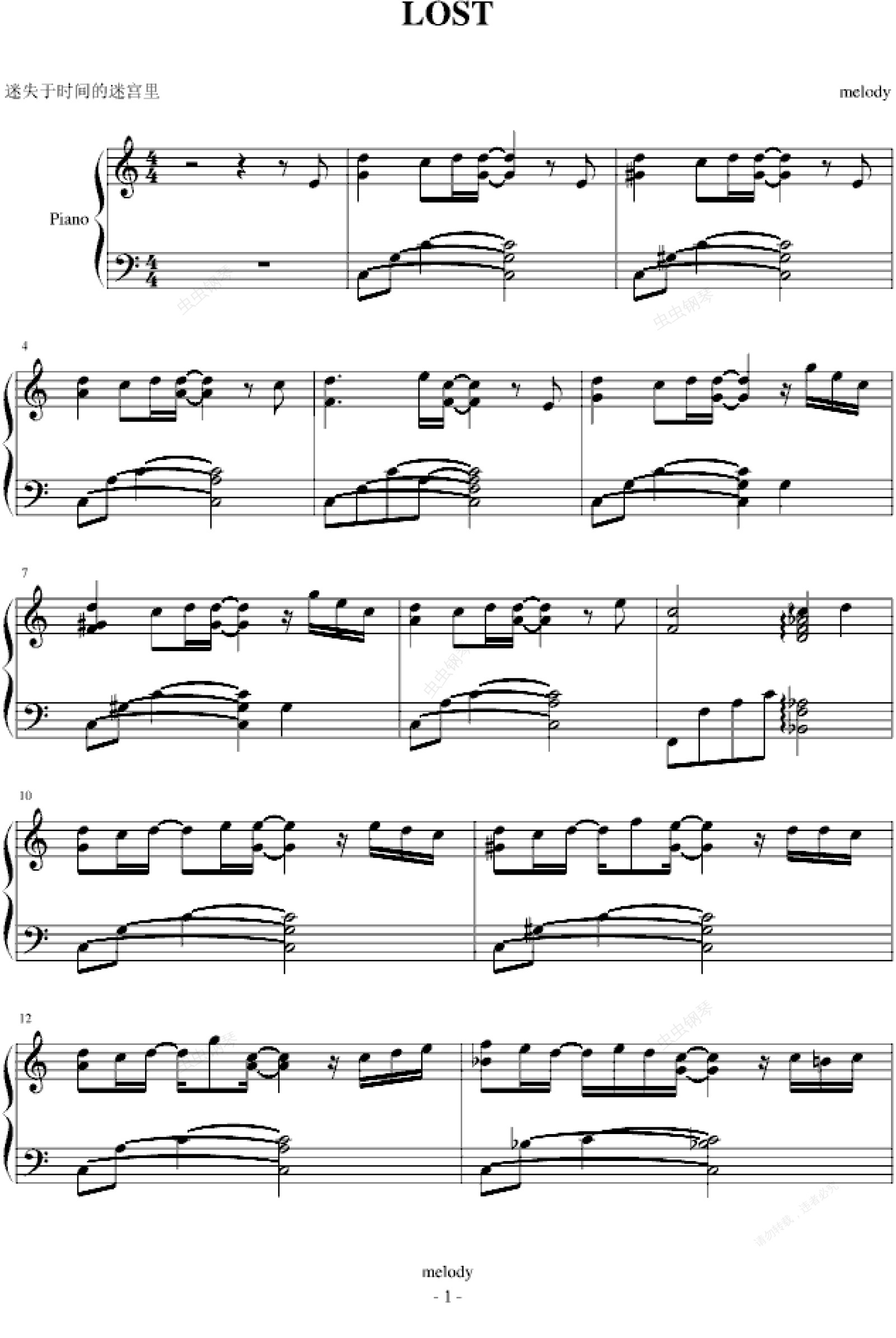 钢琴谱:Lost