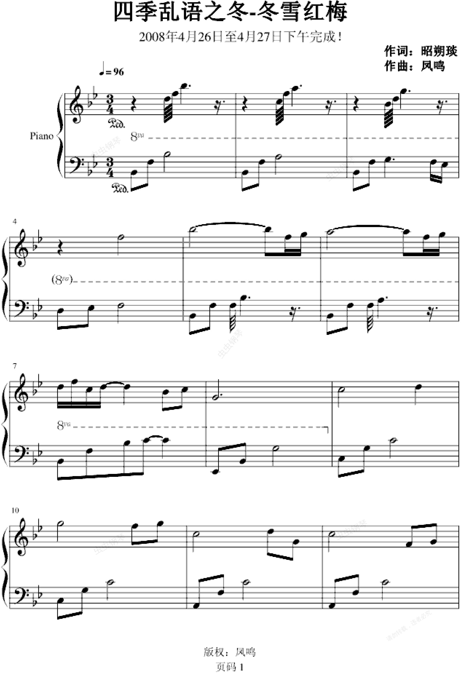 钢琴谱:四季乱语之冬-冬雪红梅