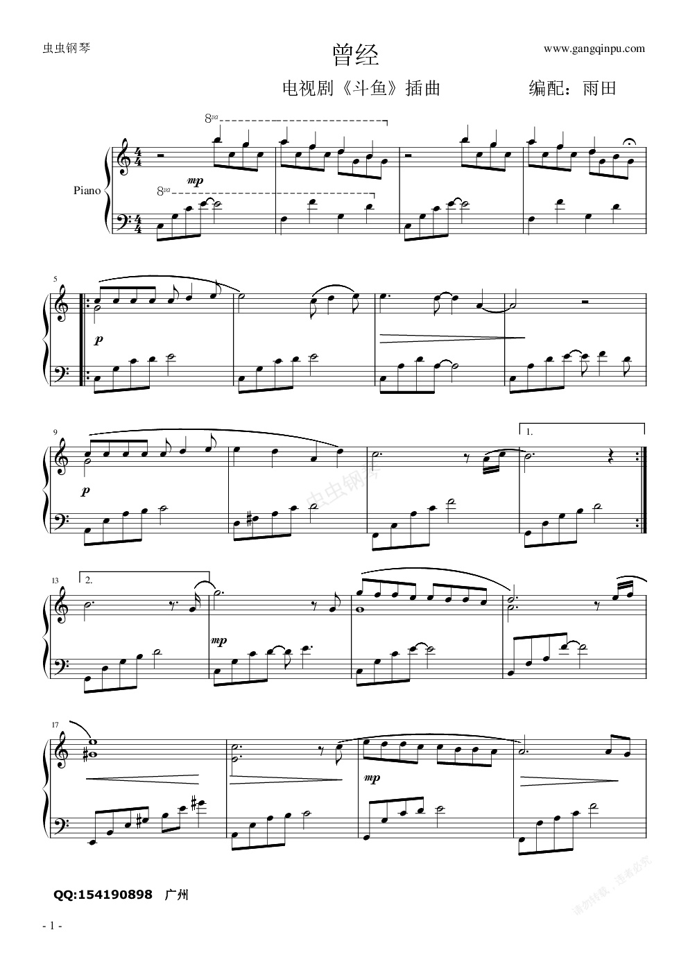 钢琴谱:曾经-电视剧斗鱼<插曲>