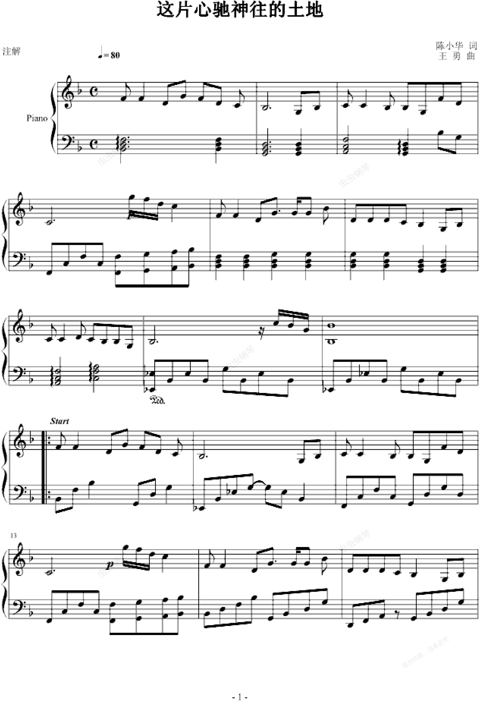 钢琴谱:这片什么的土地