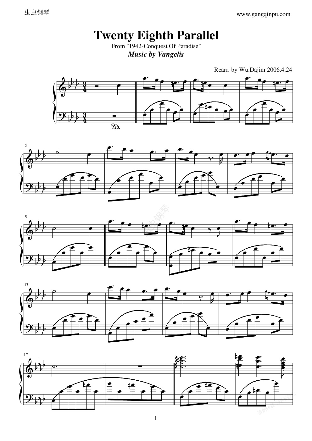 钢琴谱:Twenty Eighth Parallel-征服天堂插曲