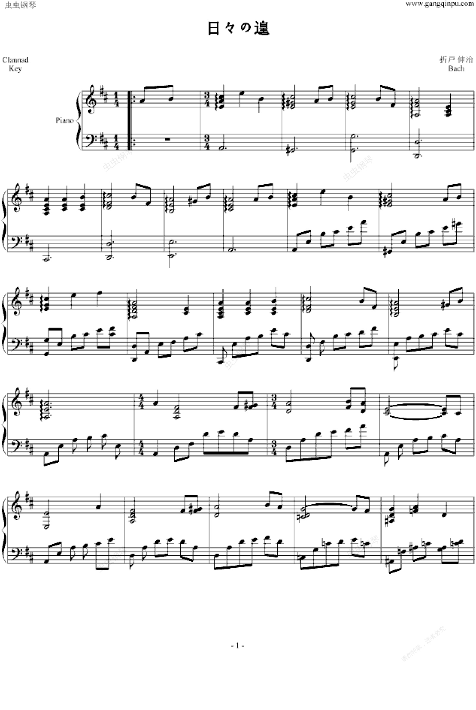钢琴谱:日々の遑-Clannad