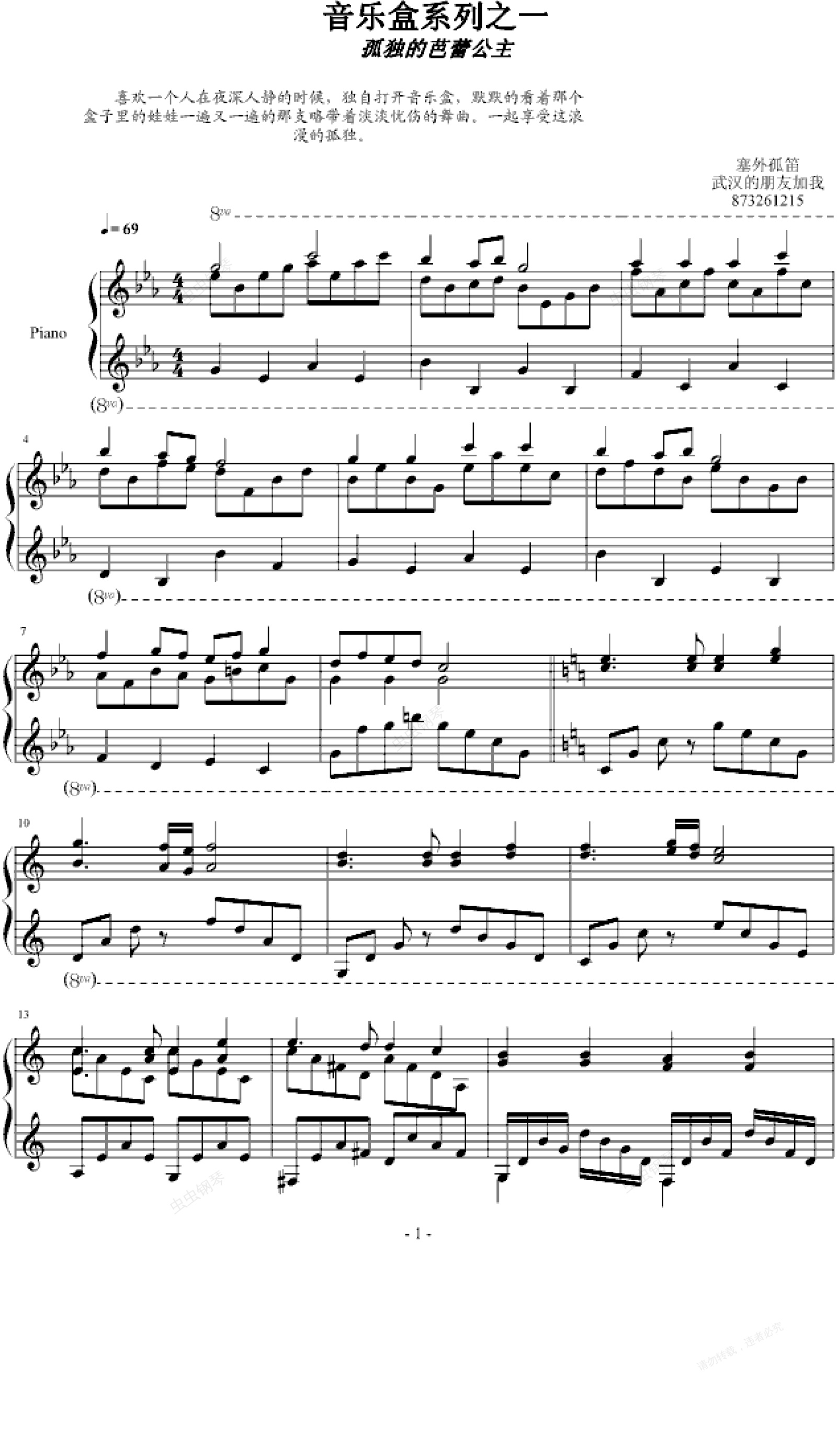 钢琴谱:音乐盒(孤独的芭蕾公主)