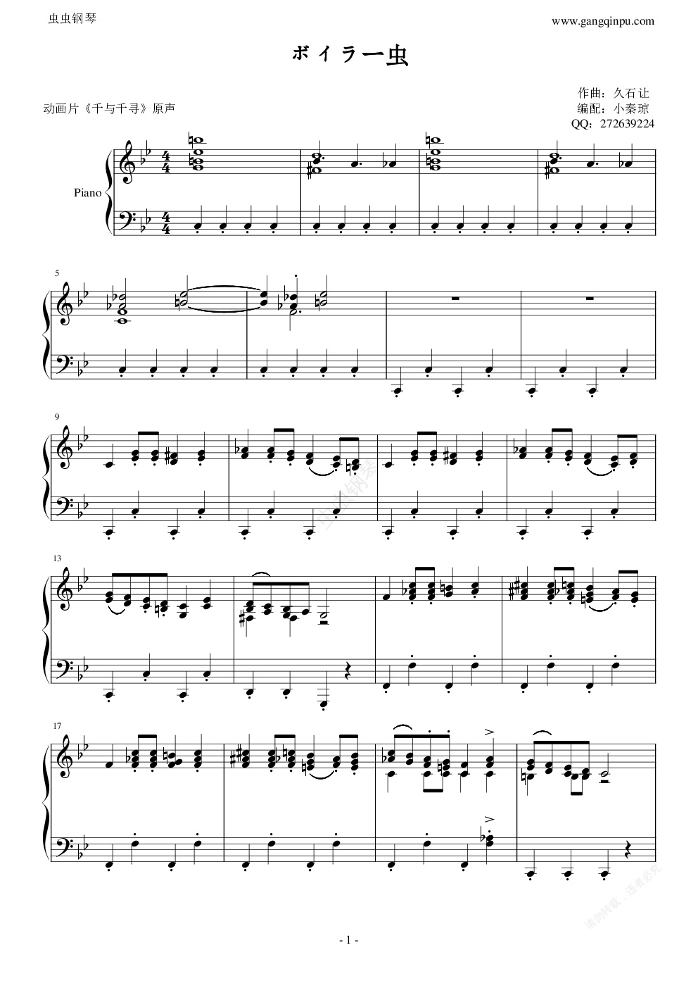 钢琴谱:动画片《千与千寻》原声《锅炉虫》