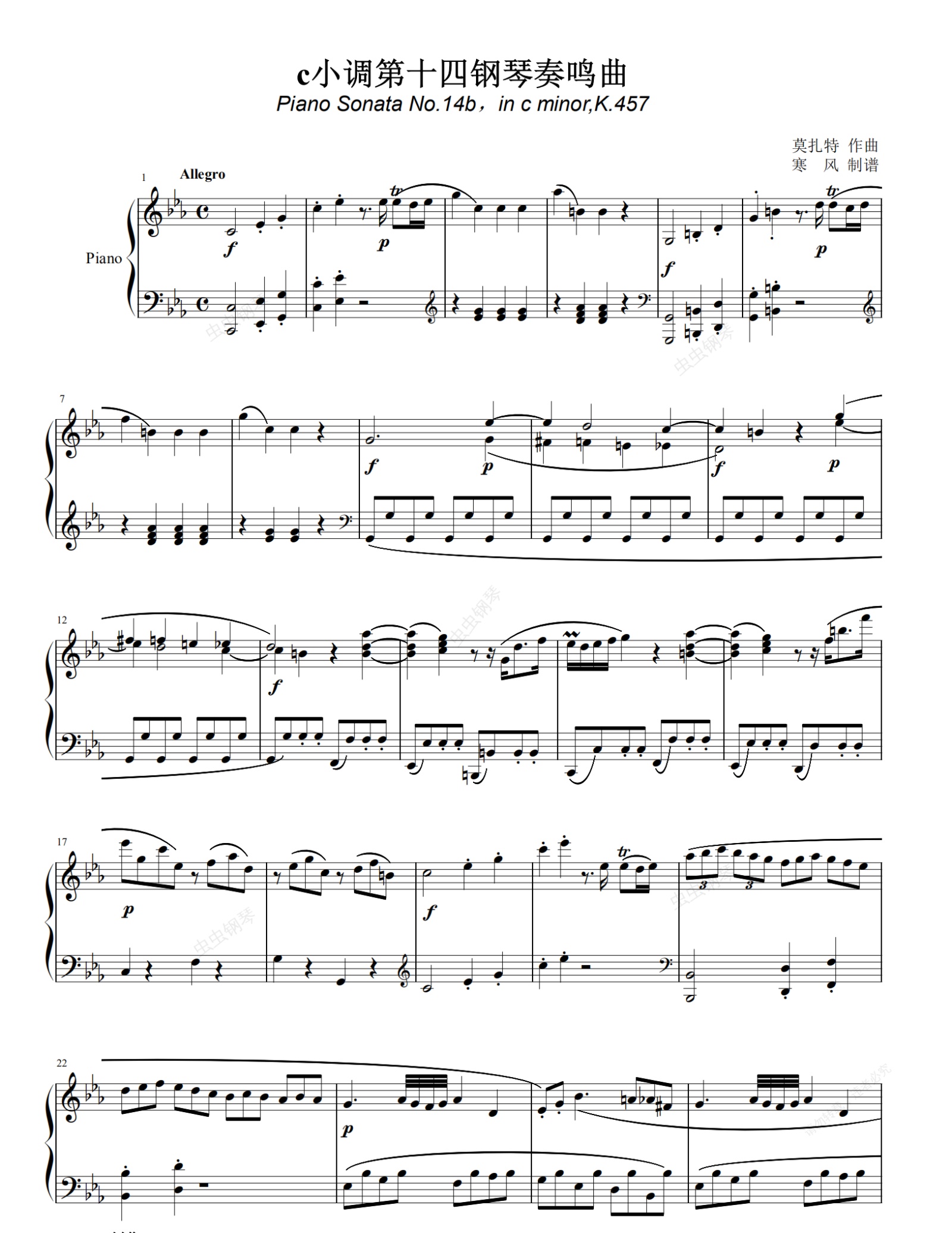 钢琴谱:莫扎特c小调第十四钢琴奏鸣曲K.457