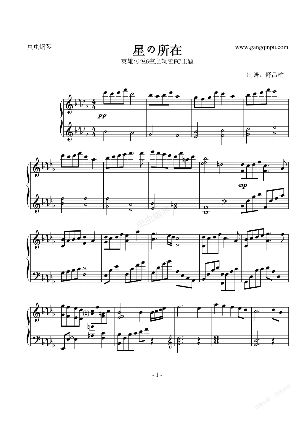 钢琴谱:星之所在-英雄传说空之轨迹FC》主题曲-完美版Ver1.0