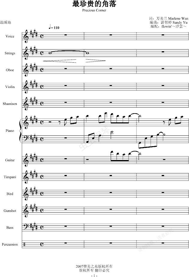 *** 4.0中有些音色没有真实的效果(VST插件现在已经下载不到了),所以此曲谱是尽自己的全力编配出的。请大家多提宝贵意见,多多支持我!谢谢~