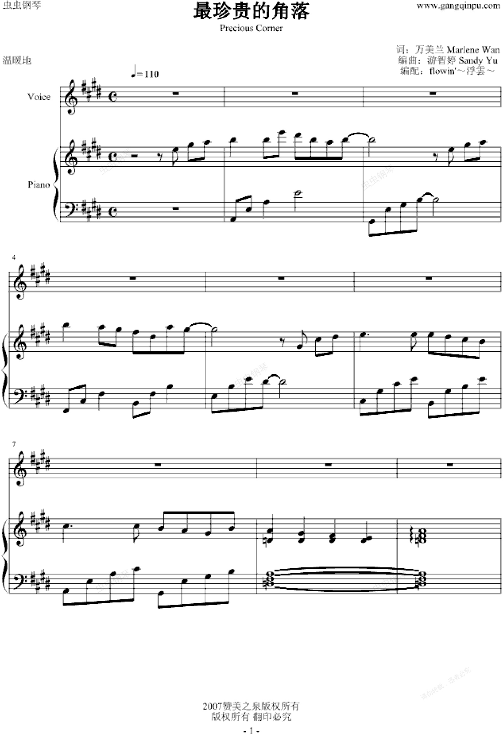 钢琴谱:最珍贵的角落(钢琴伴奏版)